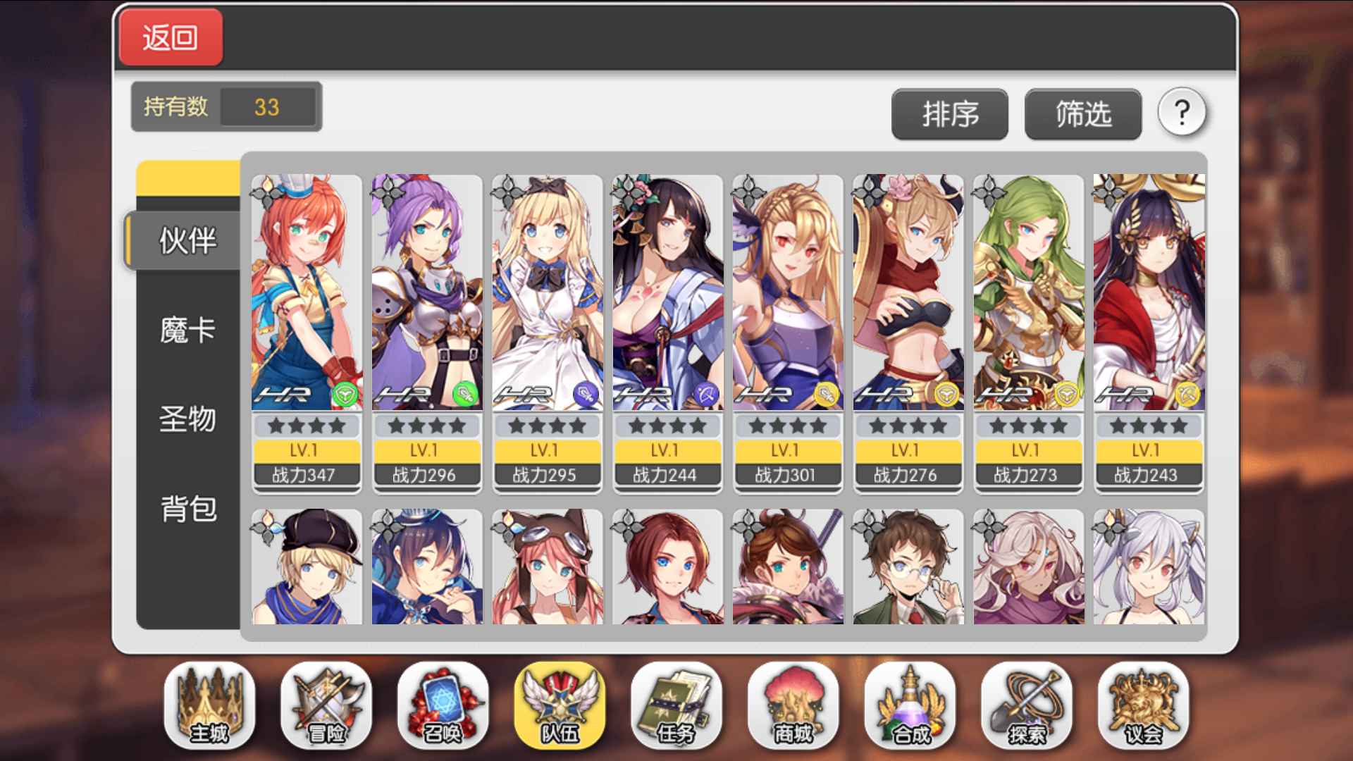 一般来说,只要不是太非,在七天左右都能再抽一个UR伙伴,再加上七天任务送的UR券,只要不重复,我们有三个圣遗物可用,这三个圣遗物就可以先替代R级圣物,然后在没有深渊圣物的情况下,我们的圣物搭配应该为三个圣遗物加三个HR圣物再加三个公会圣物。