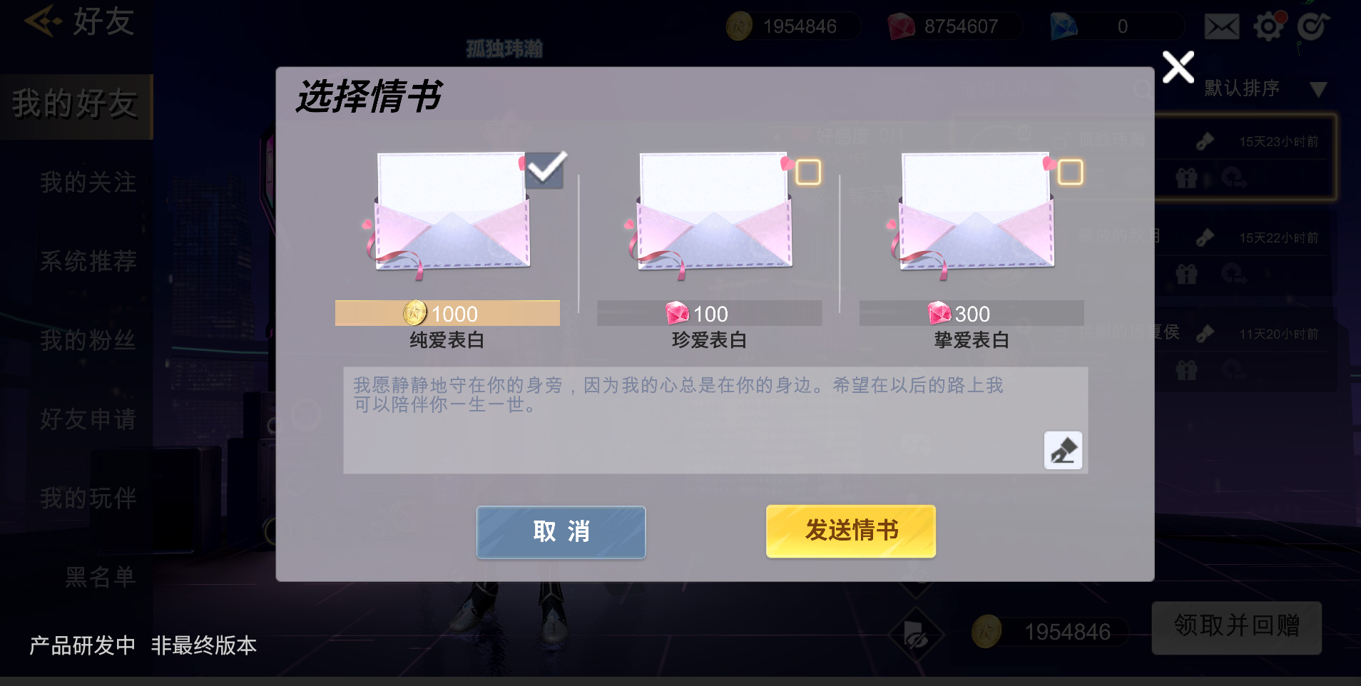 机智策划君:表白玩法在玩家达到一定等级时自动开启,开启后,从好友——好友个人主页——表白即可进入表白环节。