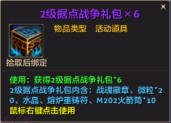 2. 失败方公会成员:每人获得50000绑银、对应据点等级据点战争礼包*3、大量经验。