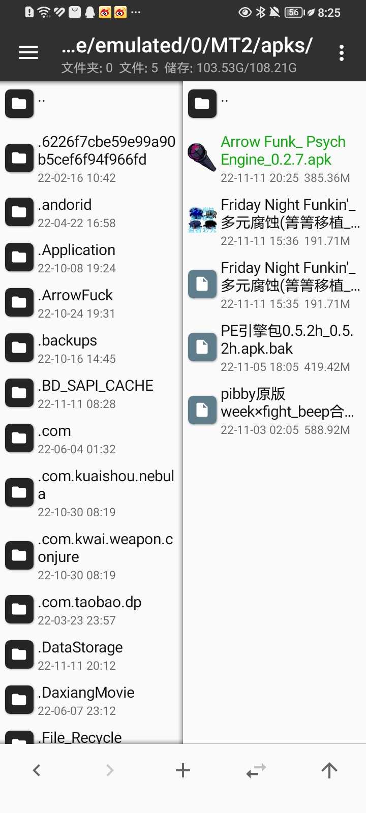 arrow funk重置week3老版本,要有mt管理器,首先我们按左上角,看到提取安装包,找到我们下载的arrowfunk,点击,会出现提取安装包,按他,按完后按定位,再点一下arrow funk,点击查看,进入,点击第一个assets,找到里面的assets和mods,再到左边找到arrowfuck(我不知道为什么会变成arrowfuck)点进去,再按最下面的加号,做一个files的文件夹,点进去,把assets和mods长按,点击解压进去就好了
