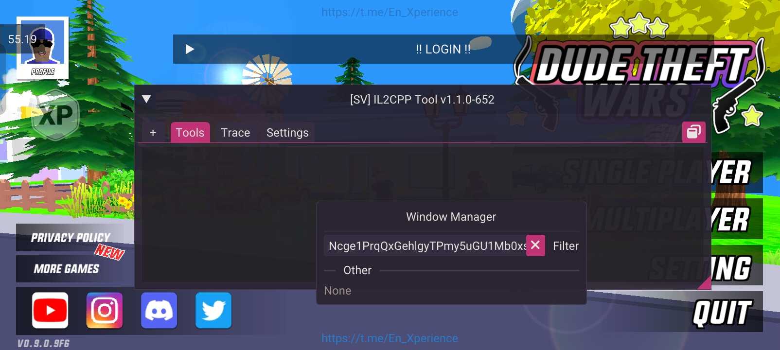 本来是原版无菜单,然后被我用mt管理器。反编程搞了两个菜单。一个是aryan菜单 一个是工具菜单。