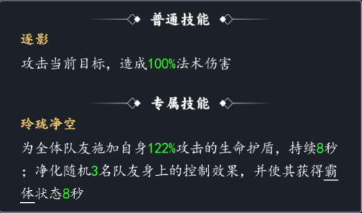 当然了,有条件的可以用玲珑公主(其不仅能增加生命护盾,还能净化控制状态,并为自己英雄增加霸体状态)