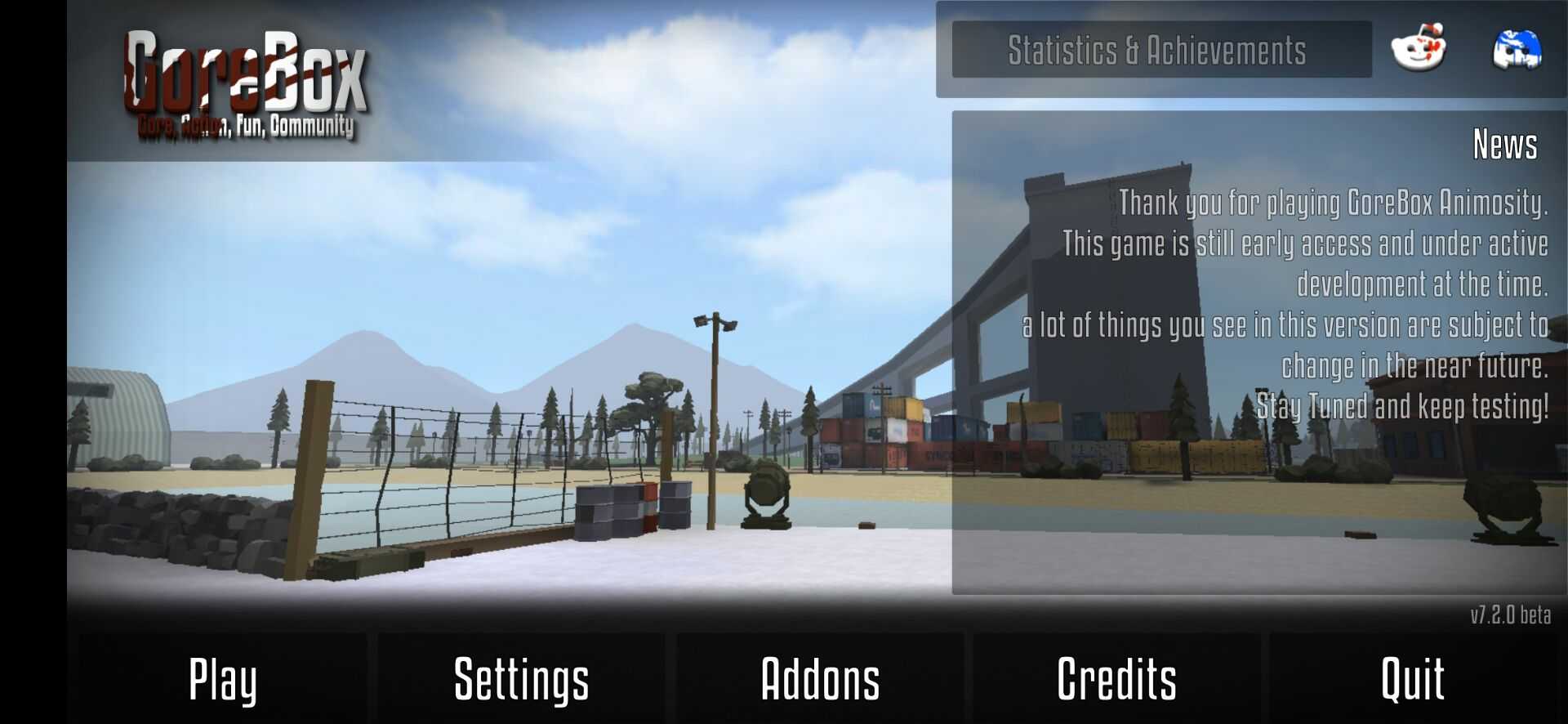 GoreBox最新版全网首发 一个超好玩的沙盒冒险类型的手游,游戏以像素的画面展示出来,玩家可以解锁更多的建筑,在这里没有任何限制,玩家可以在这里打造一个属于自己的基地,还能够开始解开最新的射击战斗,收集更多的商品,参与到生存冒险中,开始全新的挑战,在这里建造的世界中赢得更多的生机,相信不会让大家失望的。