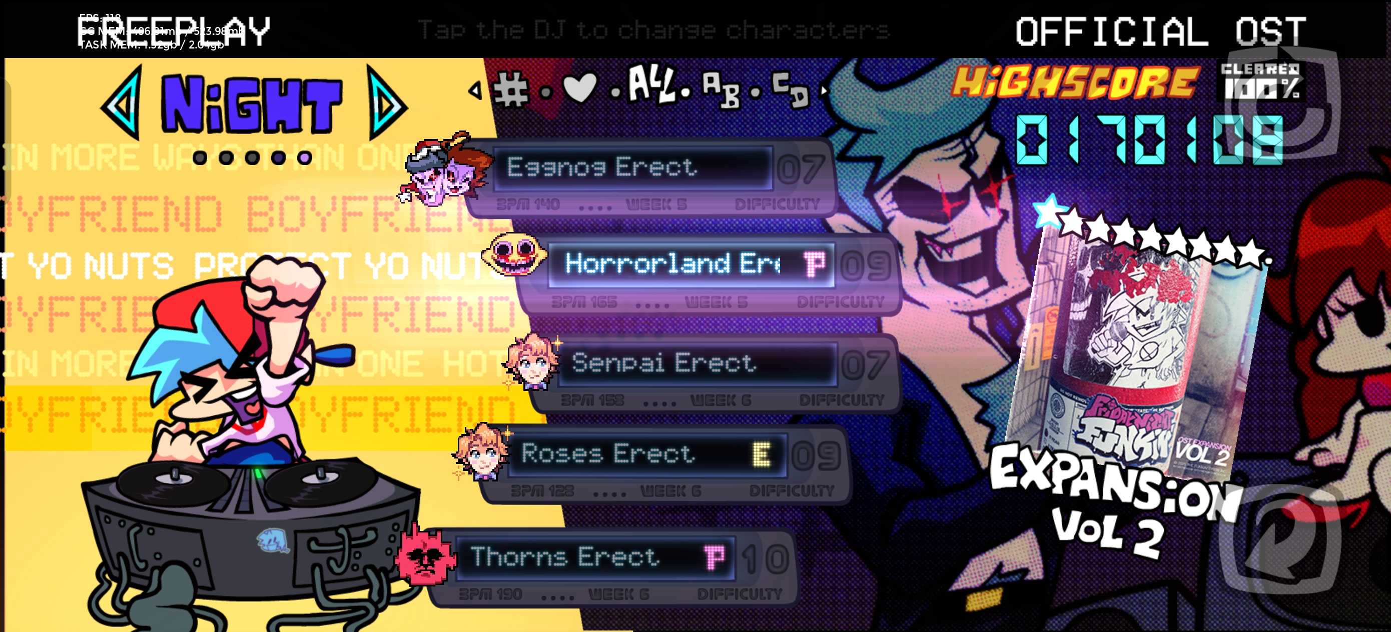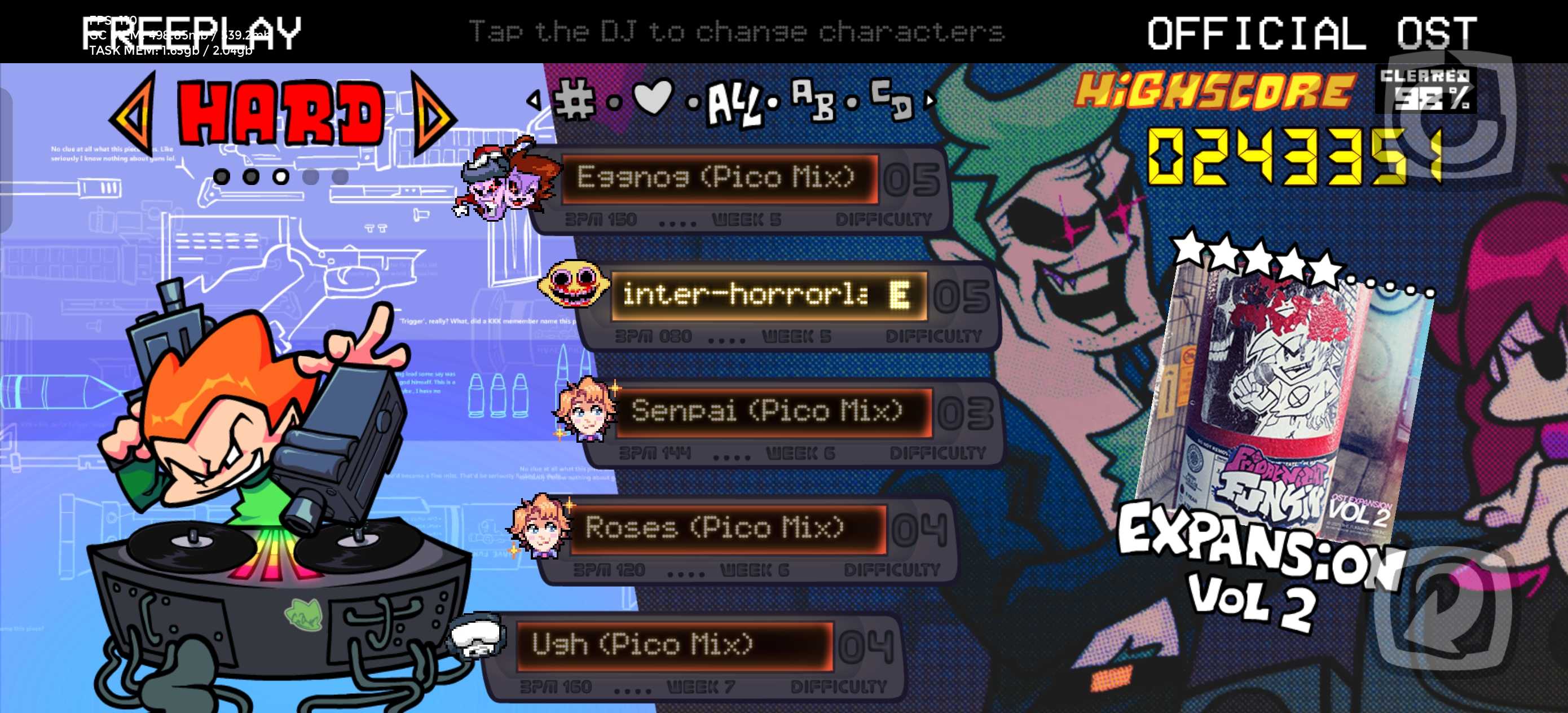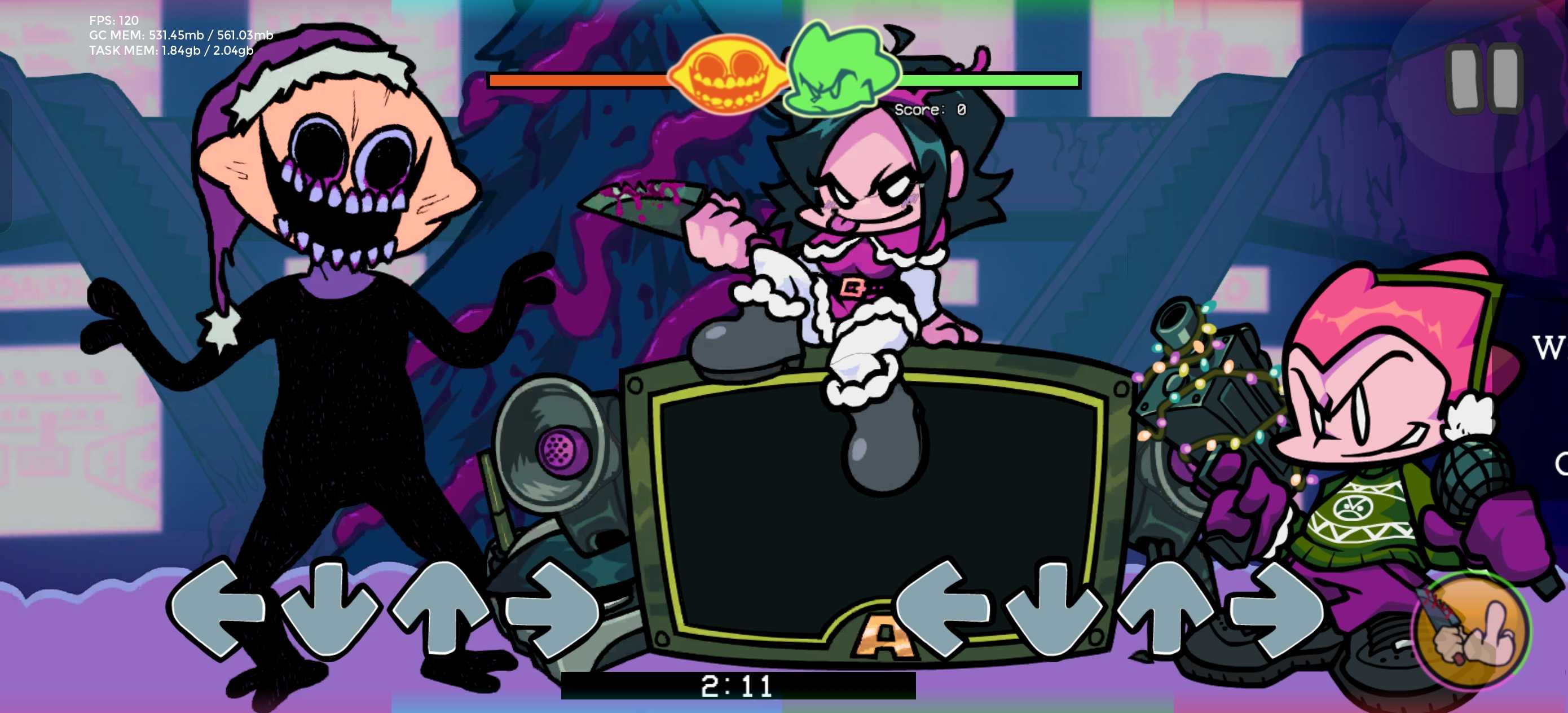官方引擎0.8.4和0.8.3 在Night和Ecert难度里增加了圣诞节BF对阵柠檬曲 Pico角色圣诞节也增加了对阵柠檬曲 在可玩角色Pico里面可以玩 曲子很还原pico