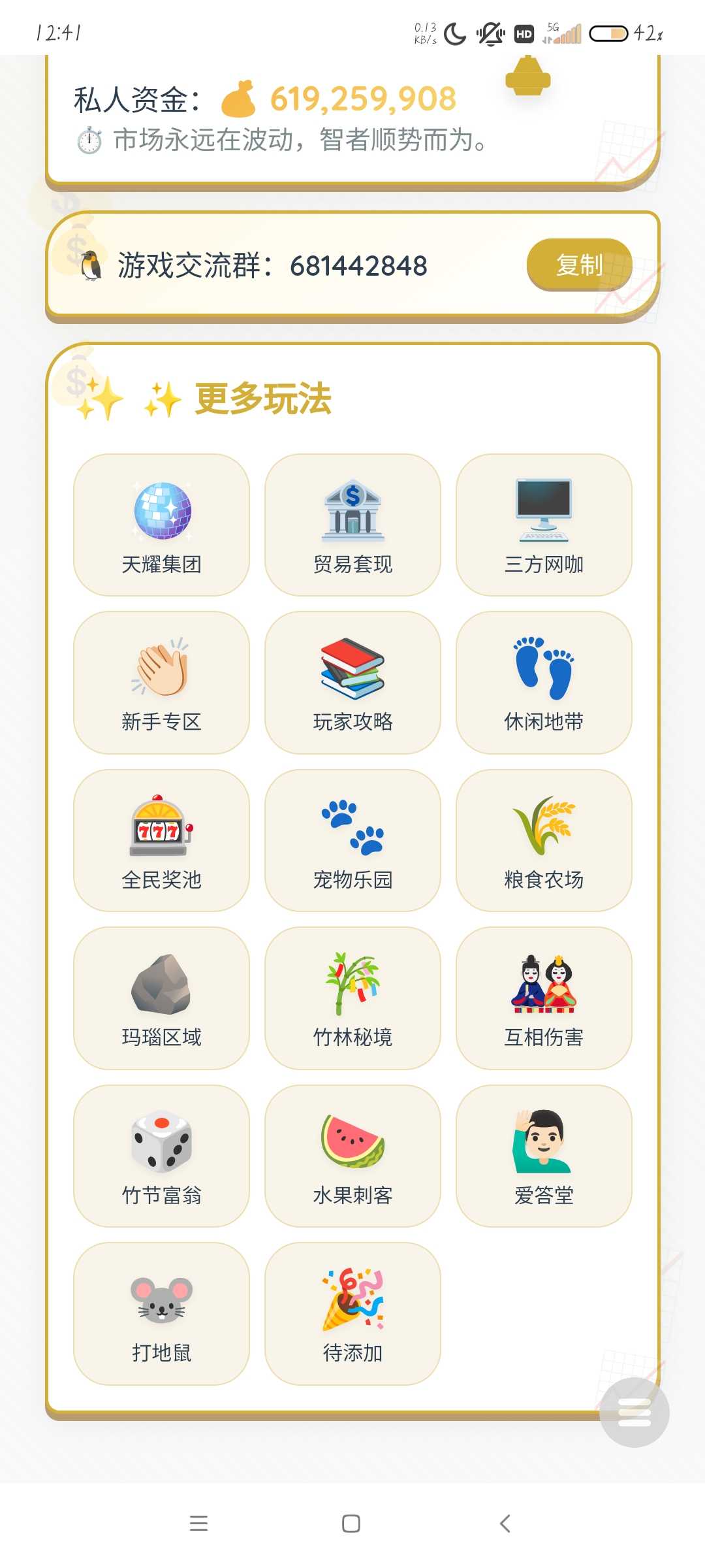 新增大量功能玩法,一个一个介绍不过来,各位直接下载体验,游戏绝对让你满意,所有文字游戏该有的都有,一个贸易大亨顶100+文字游戏,一个贸易大亨足以