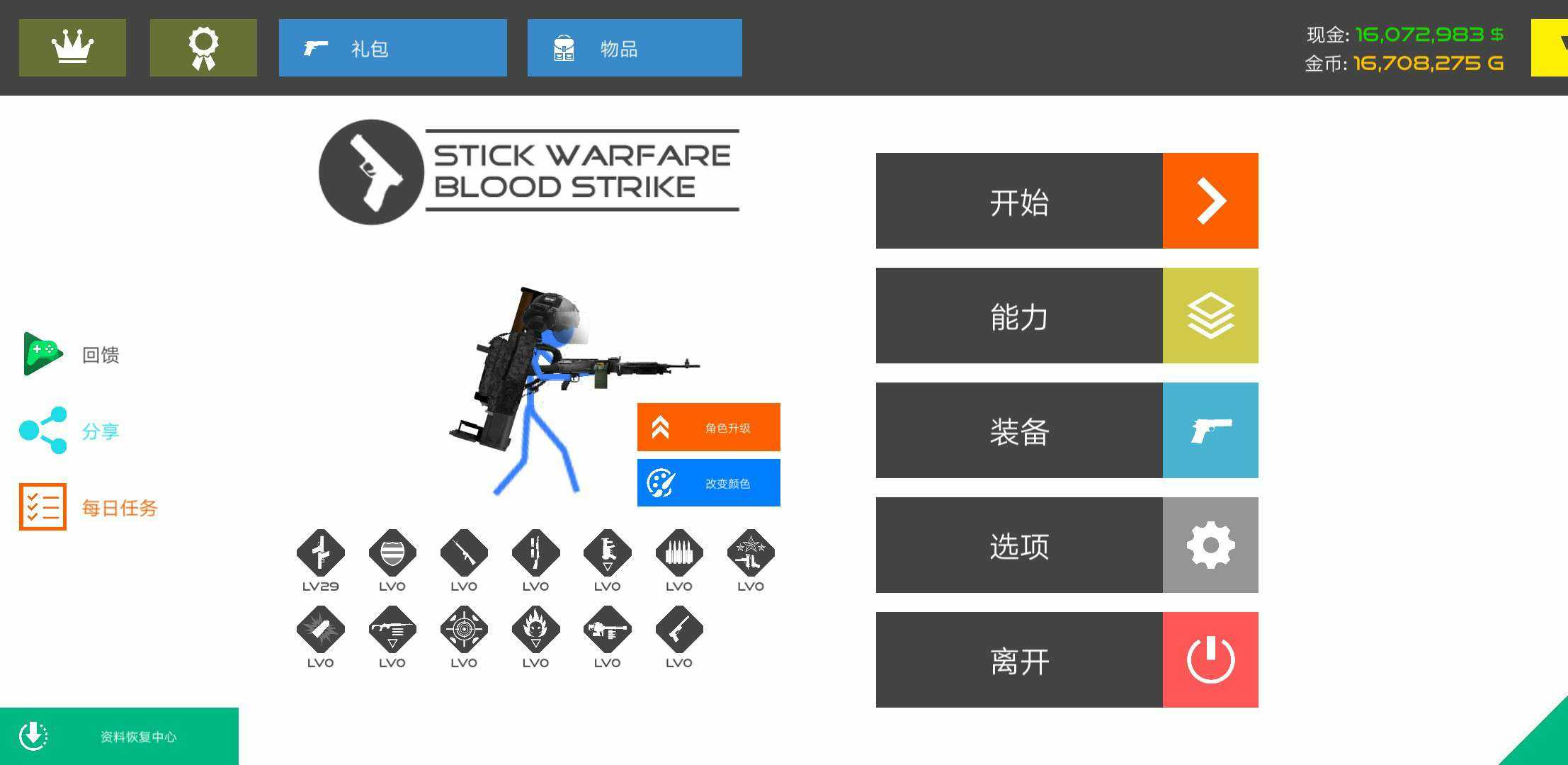 打完一局获得钱然后去升级一下人物就可以无限马内了,资源包已经自动购买,适合无聊的时候开一局玩一玩