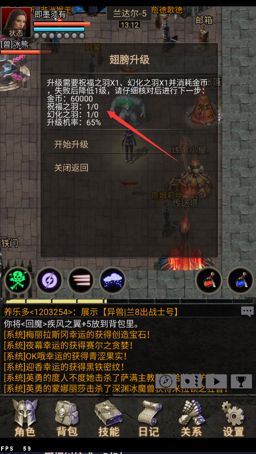 9、翅膀,我相信这是你一进游戏后,听见这个词后就想获取的装备吧,没错,翅膀加百分比伤害和减免,是一个非常好用切实用的装备,能大大提升你的输出和生存能力,可是这个装备需要30级才能穿戴,所以一定得加油努力升级,翅膀是可以升级的,前5级可以只使用蓝毛升级,成功百分百,每次成功加百分2的百分比,5级后升级需要使用蓝毛加紫毛,同时失败会掉一级,作为平民党,我建议先升到5级就可以了,因为5级就够你用好久