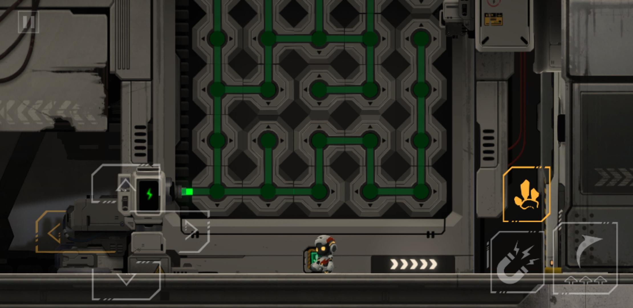 开始第二章,第一个解谜处是这个电路,按照下图连就行了,连完调重力,太好了我们主角终于能跳跃了,坐缆车,来到下一个关卡,中途大部分小关卡都是跳跃,跳跃加磁吸盘,跳跃加升降台就能通过