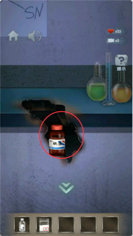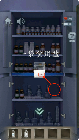 29.进入房间3,拾取白纸,将水和粉末放入容器内,将白纸放入,得到箱子密码。