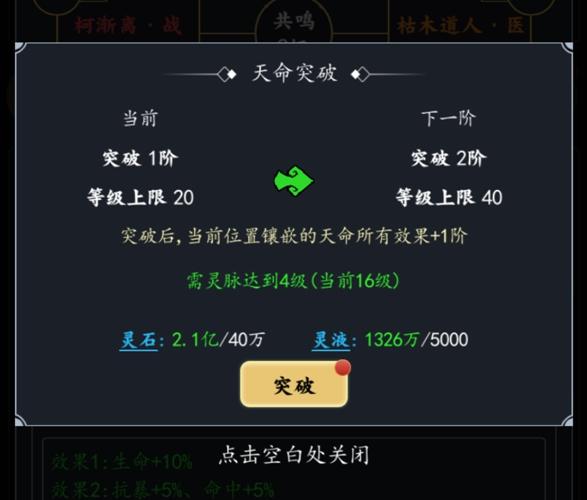 命格的5种效果是需要以天命组合来开启的,即如果有了特定其它角色,即可激活命格的特定效果。因此,有了新伙伴加入之后先看看能不能激活命格效果,不上场也不要着急炼体或者分解。ps:一旦激活羁绊,3种命格的特定效果都能开启。命格等级可以提升突破,带来更多属性加成,突破时命格效果还会提升。