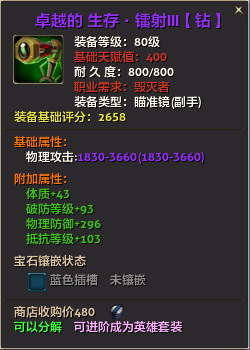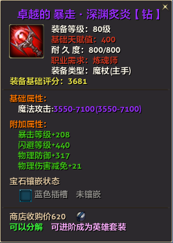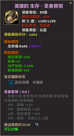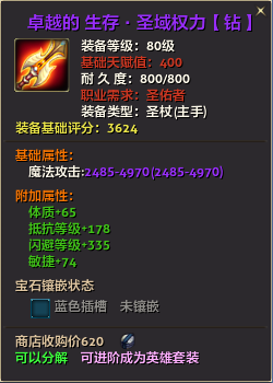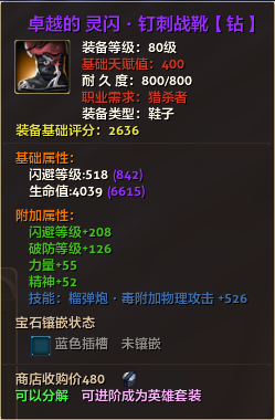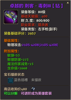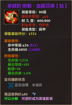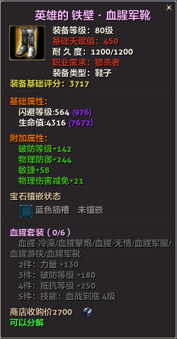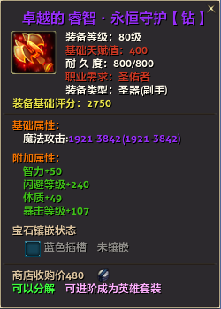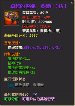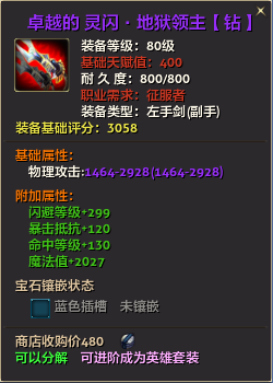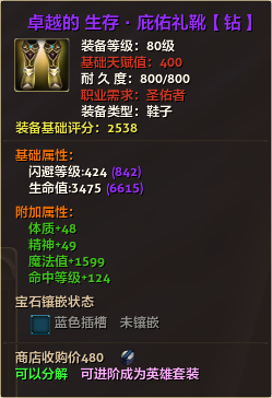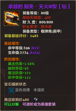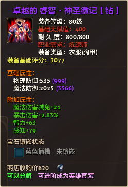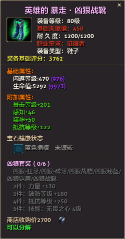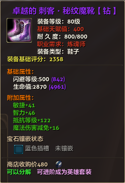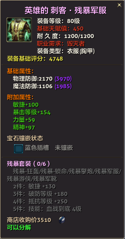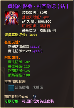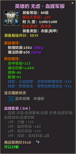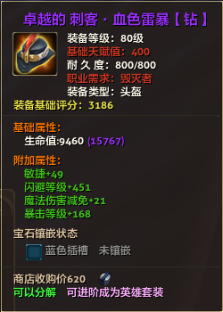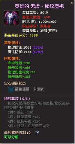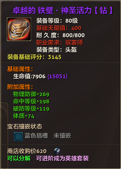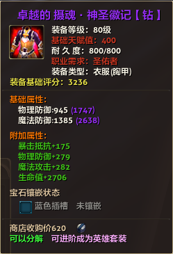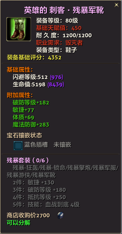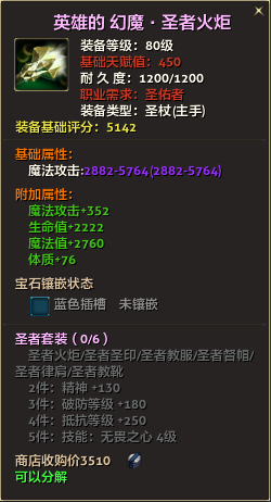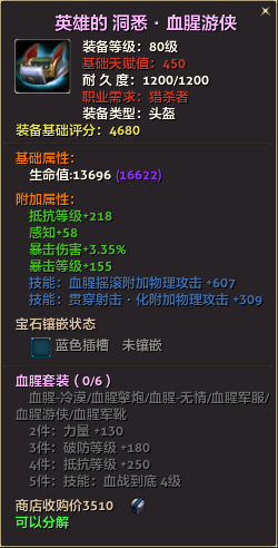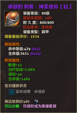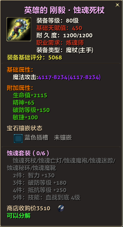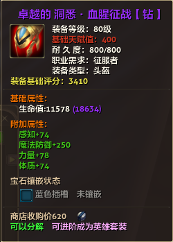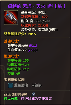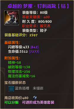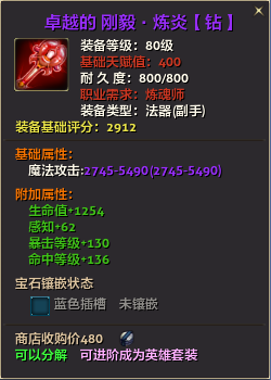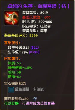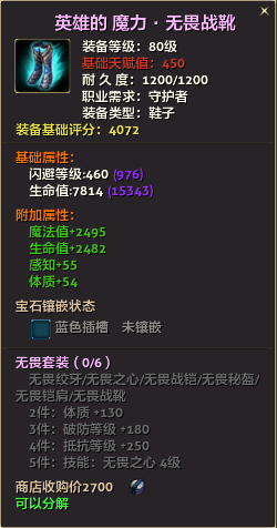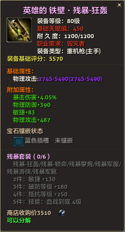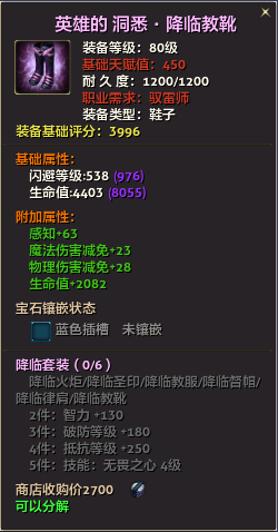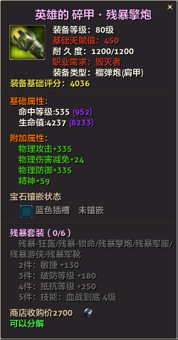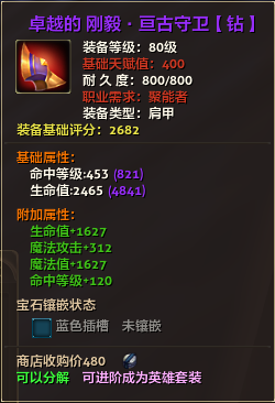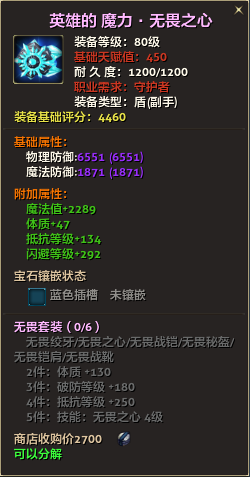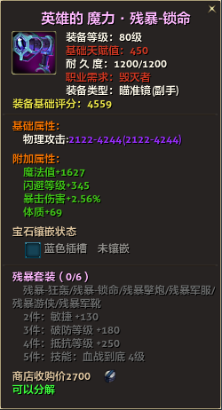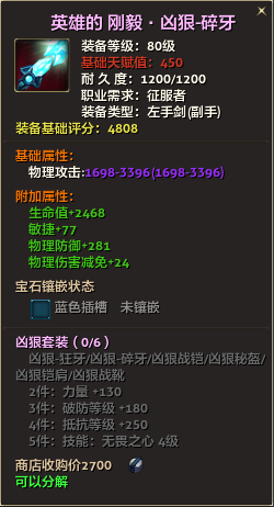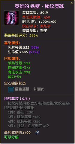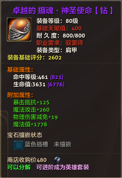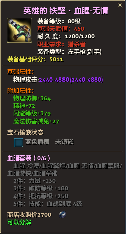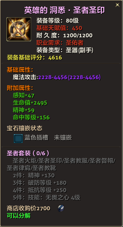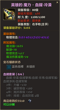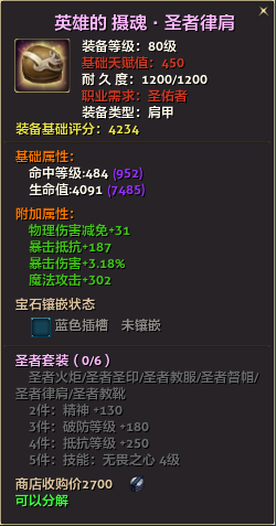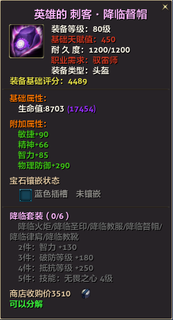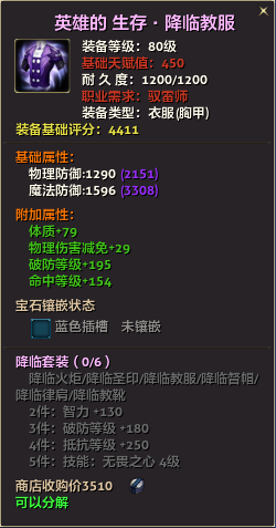 80级英雄装备:本职业及基础天赋值450。
