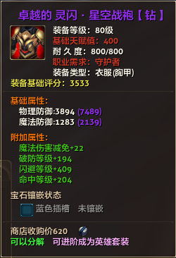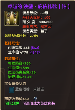 80级钻装备:本职业及基础天赋值400。