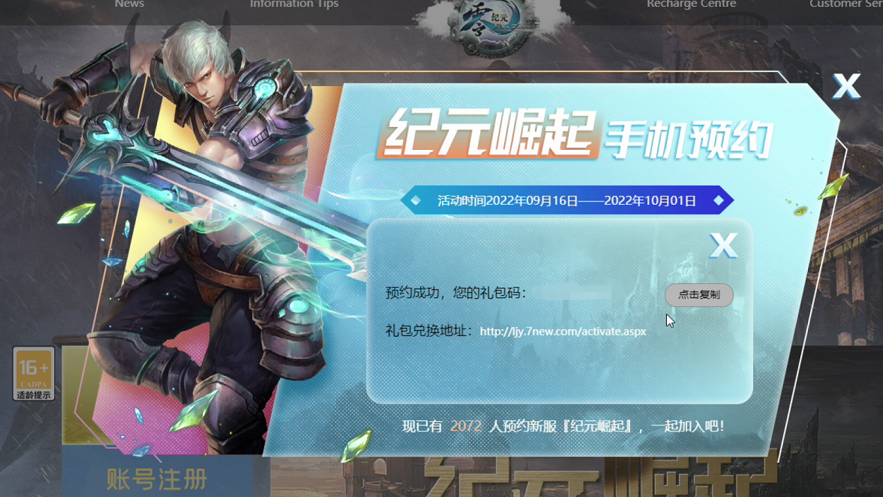 接下来小编告诉你激活礼包码的具体操作,第一步进入《零纪元》官网进行手机预约,相信这一步大家都已完成了,第二步接收手机预约码,完成了手机预约后,页面会自动显示你的领航礼包的激活码,你可以选择此时截图记录,同时也会发送短信至进行手机预约的手机中。