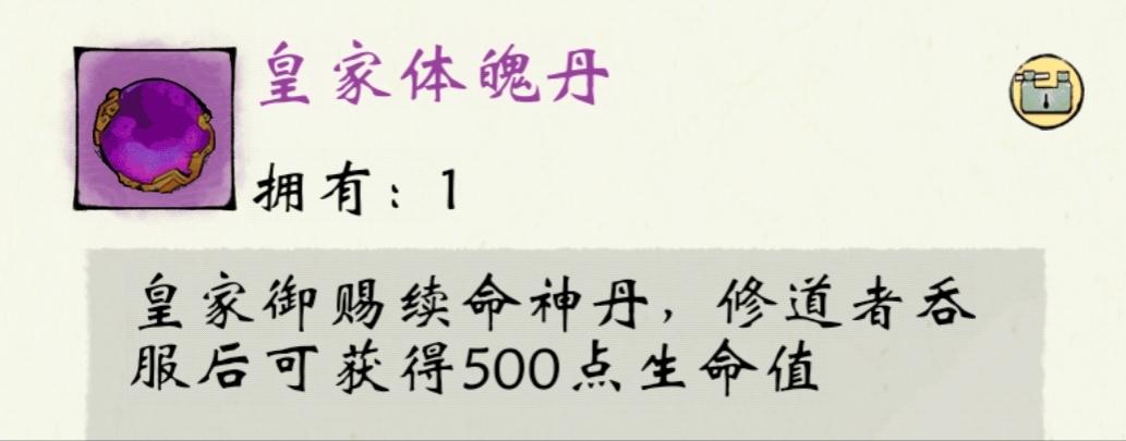 (2)皇室:皇家锦盒,内含皇家御赐续命神丹,名为皇家体魄丹,服用可获得500点生命值,数值较低没有影响也不大。