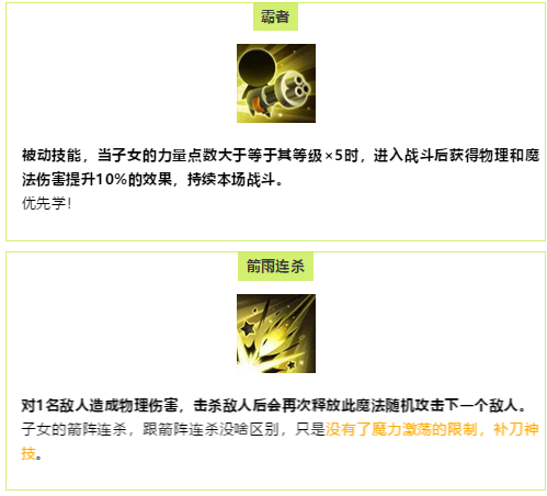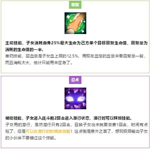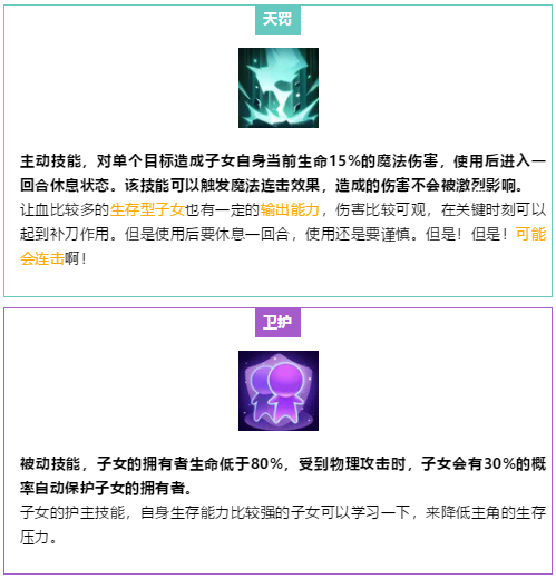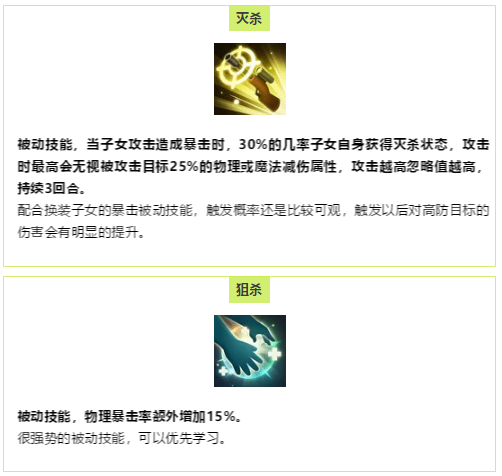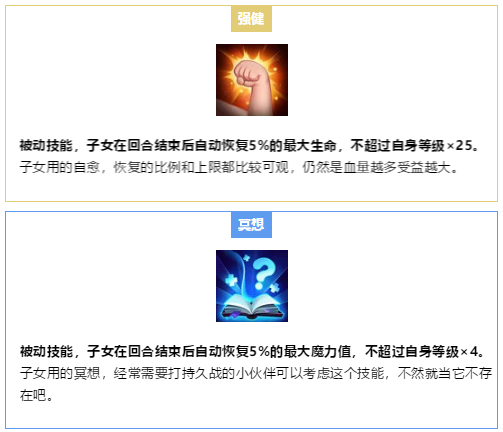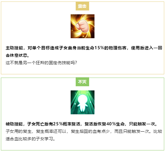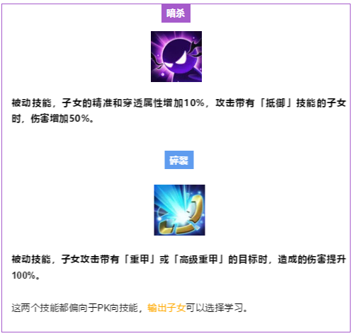 接下来就是关于子女技能选择的推荐啦~