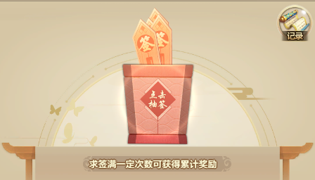 活动期间,玩家每天都可以进行抽签获取对应运势的奖品,每日有一次更改奖品的机会,求签满一定次数会获得累计奖励。