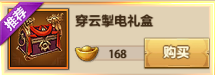 活动期间,商城限时出售穿云掣电礼盒,开启礼盒有几率获得神器幻化奖励。