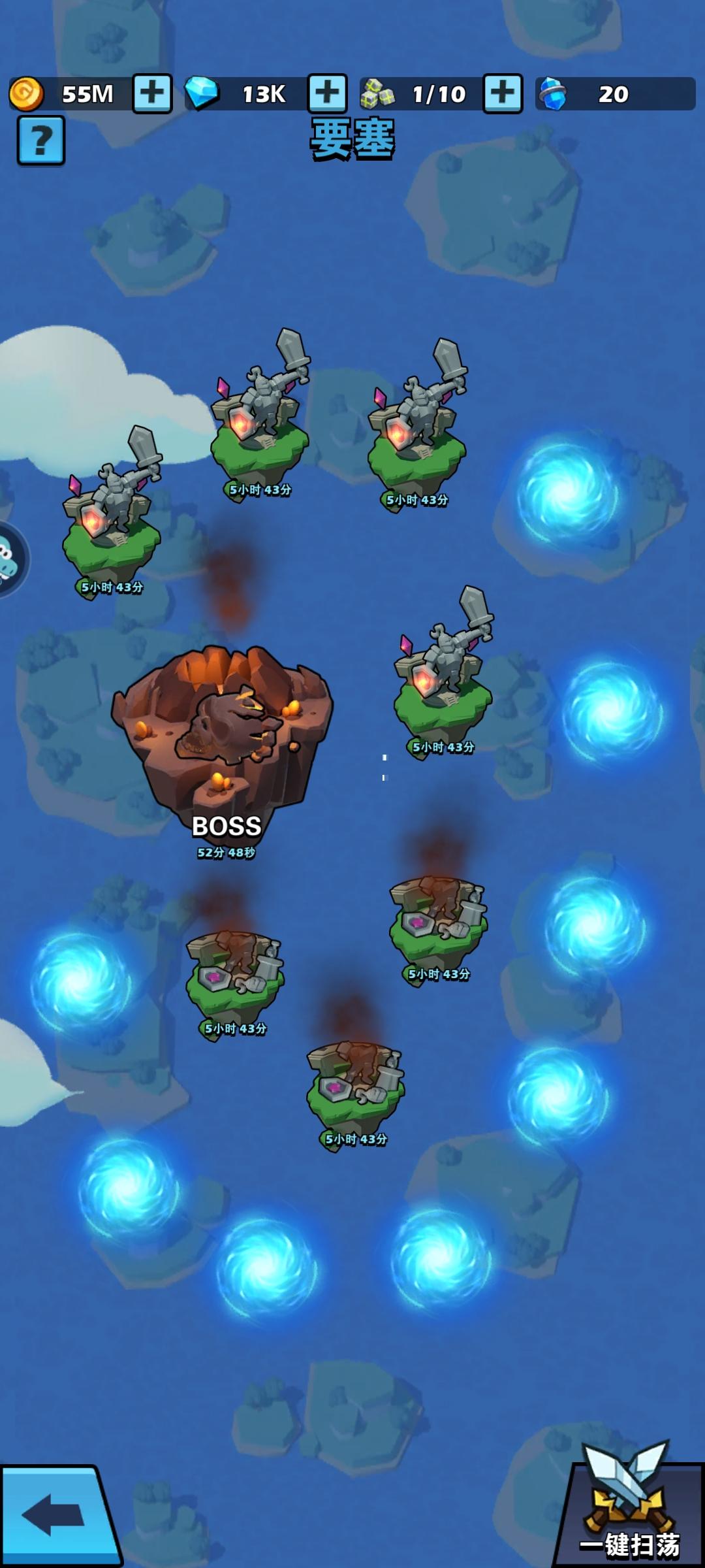 4.要塞: 在前期打不过的加大佬好友过boss,其他岛屿3、4次打死的,建议留一半的次数