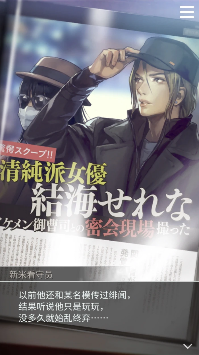第二章第四次会见,即使是这样,现在也只能继续前进了呀。第三章第三次会见,从今往后,会由我牵着春人往前走哦。第五章第三次会见,总之先把心思集中在眼前的线索,很能想到的事上吧?第五章第四次会见,春人想怎么做呢?第六章第一次会见,下次找个时间来次悠闲的旅行吧。