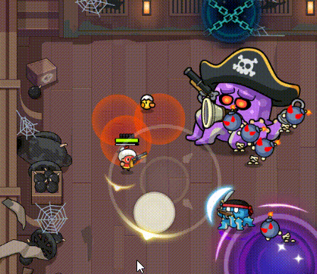 技能一:蓄力三秒在角色脚底下释放一个可造成伤害的漩涡,并且召唤出小章鱼和一些小虫子