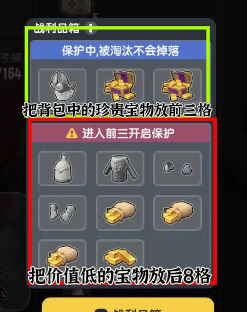 总结:优先把贵重物品放在前三格,以免被其他玩家淘汰后,宝物掉落,没有带出经典