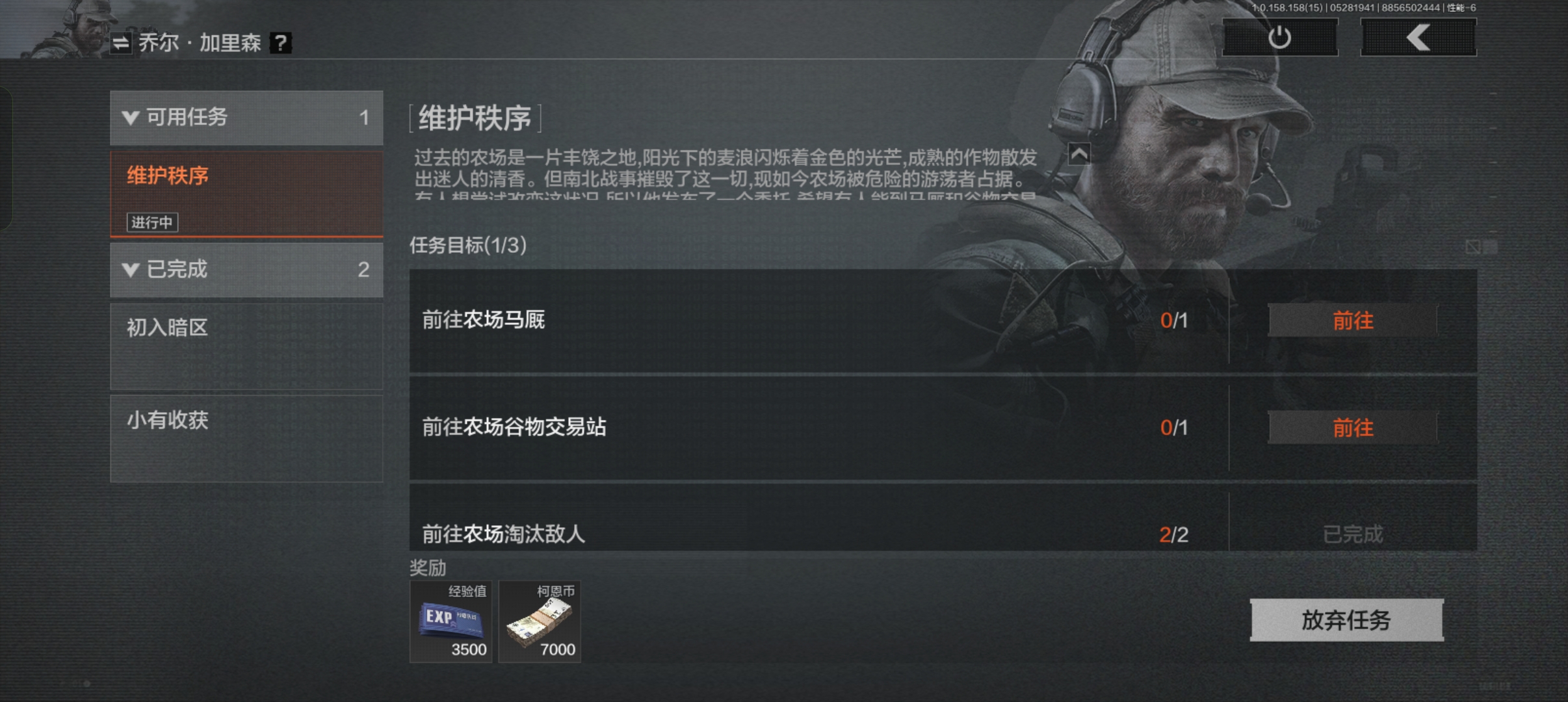 他的任务相对繁琐一些,需要探索地图并参与作战,不过完成的奖励也比较丰厚;