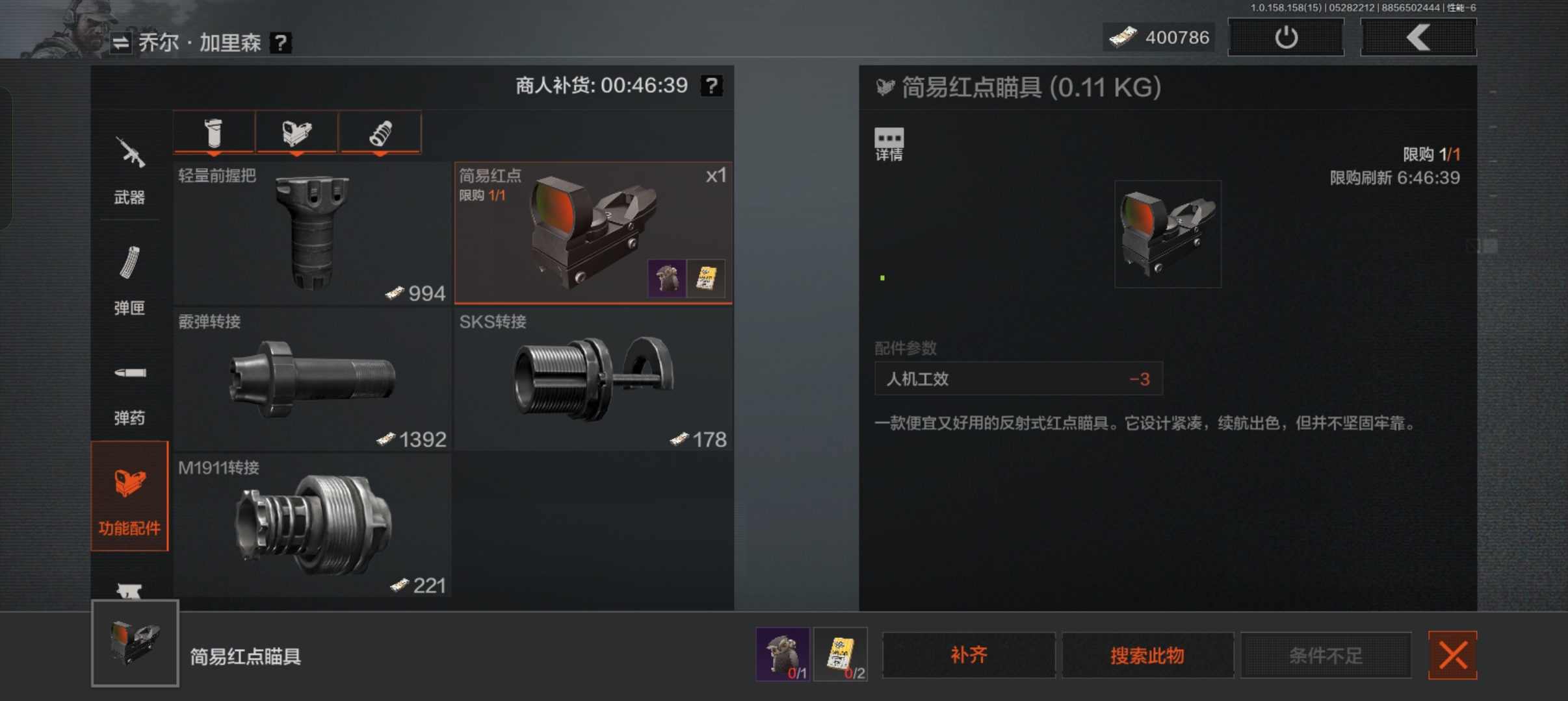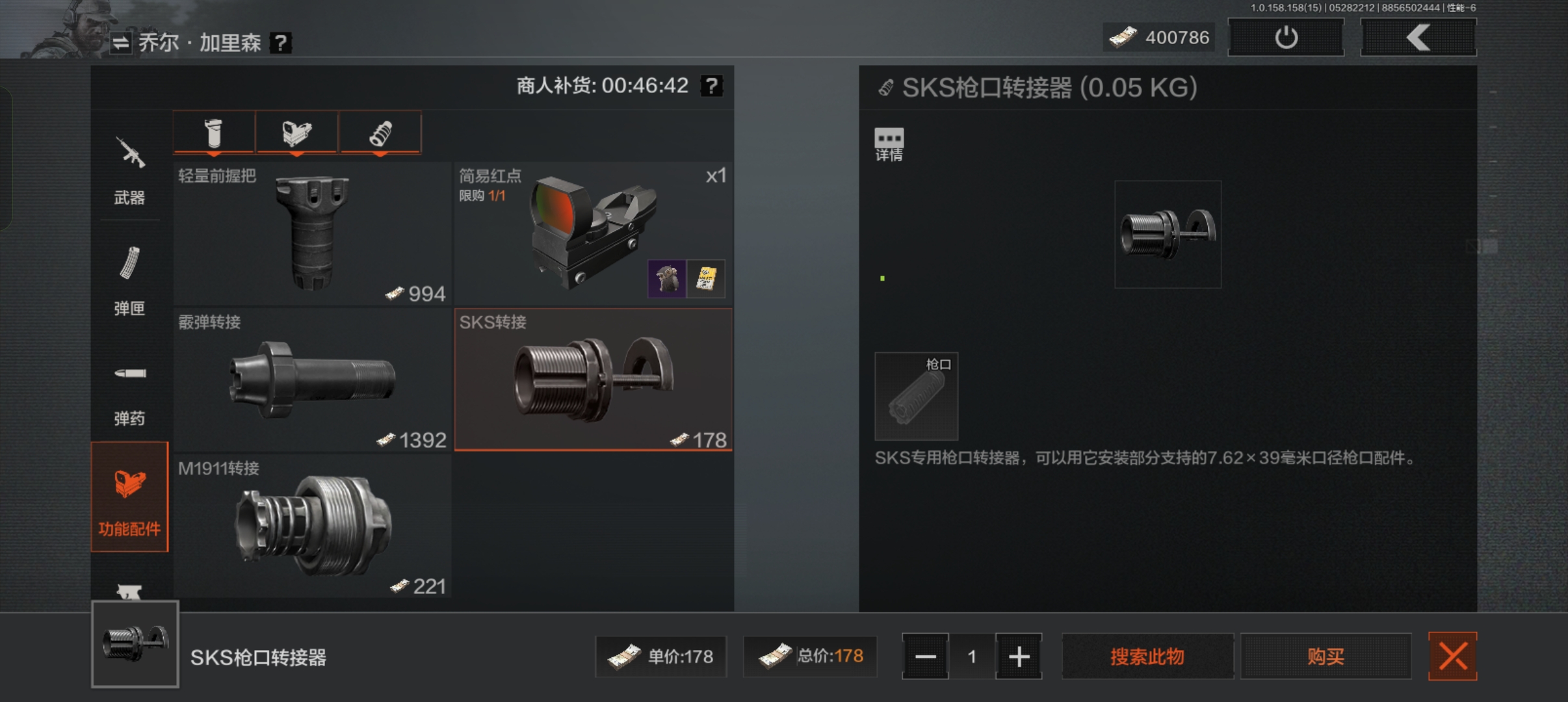 而每日限购的SKS枪口转接器、M1911枪口转接器等改造武器核心配件,物美价廉,千万别再去市场买啦!