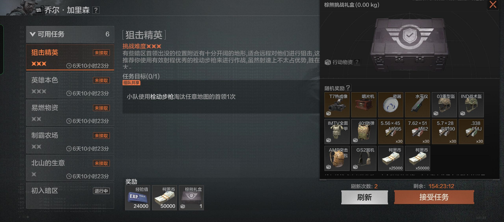 基础任务全部解锁后,他会在每周一发布5个难度不一的周常任务,完成这些任务可以获得柯恩币以及能开出高价值物品的礼盒。
