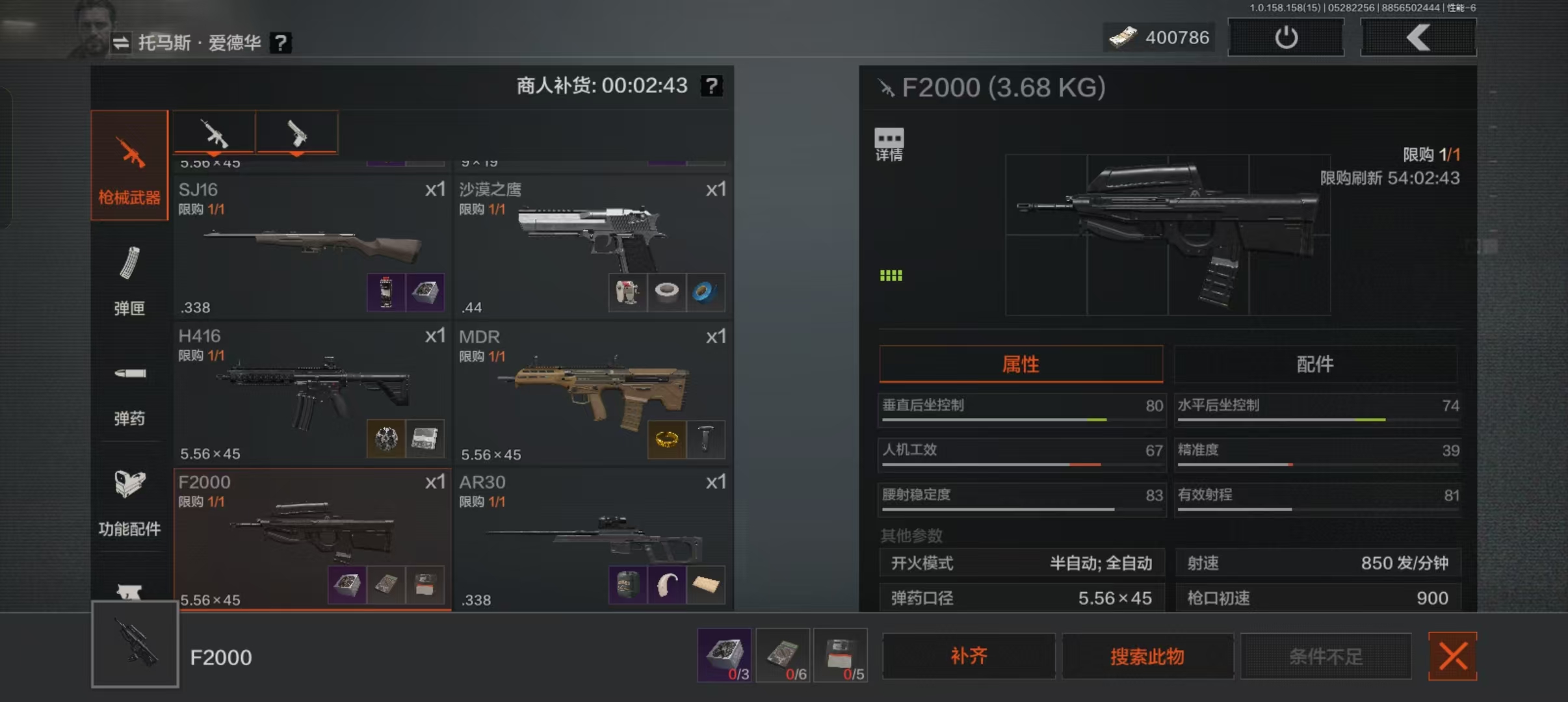 突击神器F2000突击步枪(无需改装即满配)、3.5倍镜(中距离控场必备)、蓝色镭指等功能配件严阵以待,等你拿下!