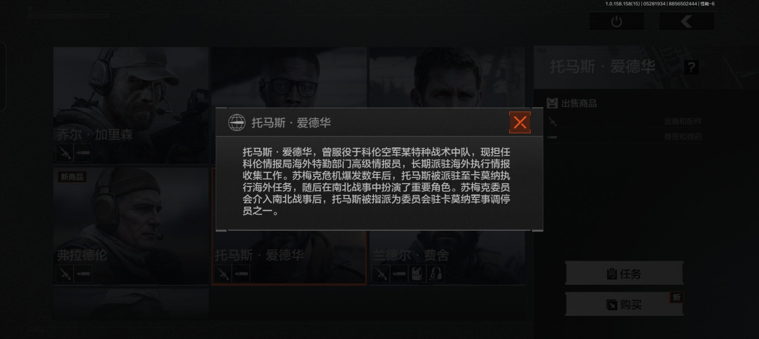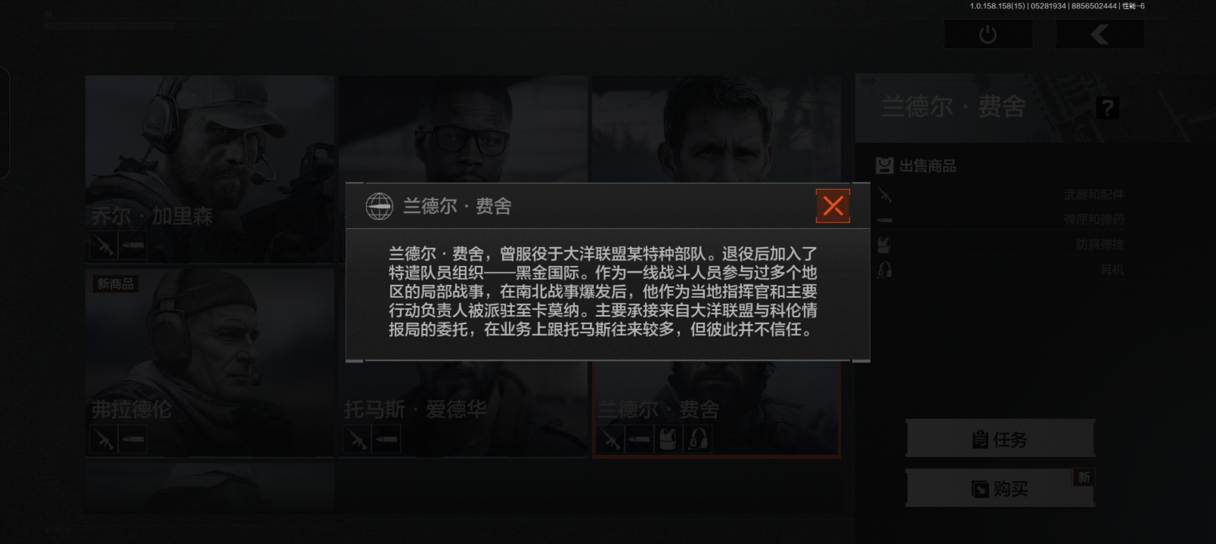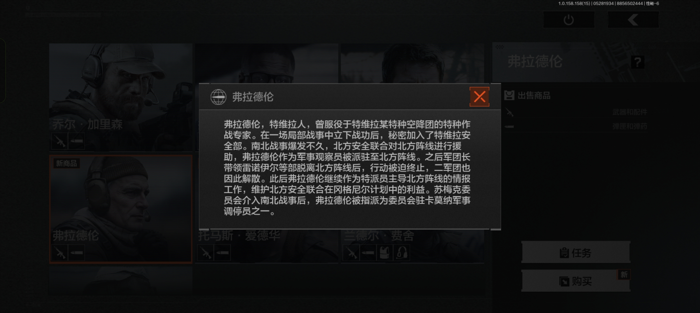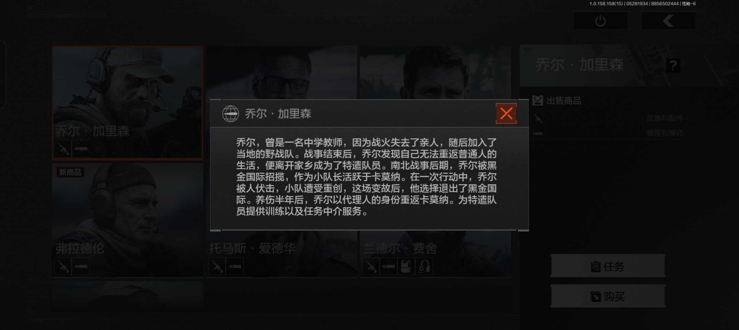 利用家族人脉建立地下情报网,暗区唯一敢同时交易黑金国际与特遣队的“双面商人”。