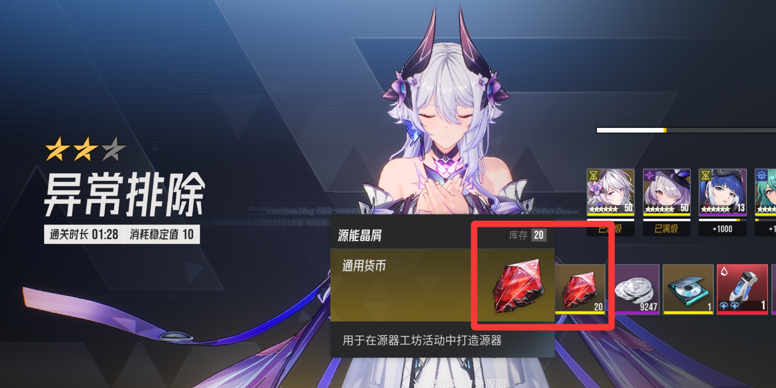 每一把掉落“20”用于制作源器的材料“源器晶屑”