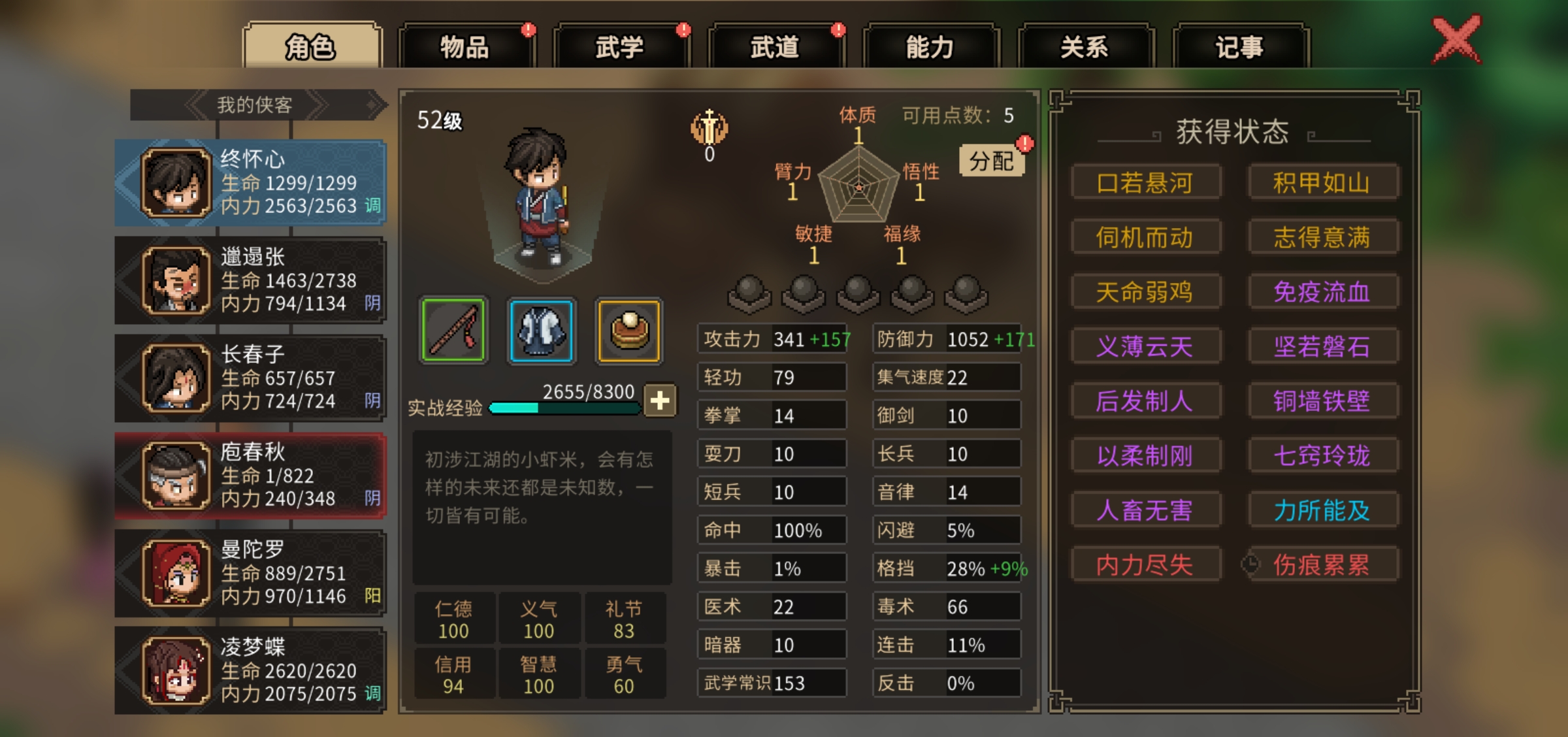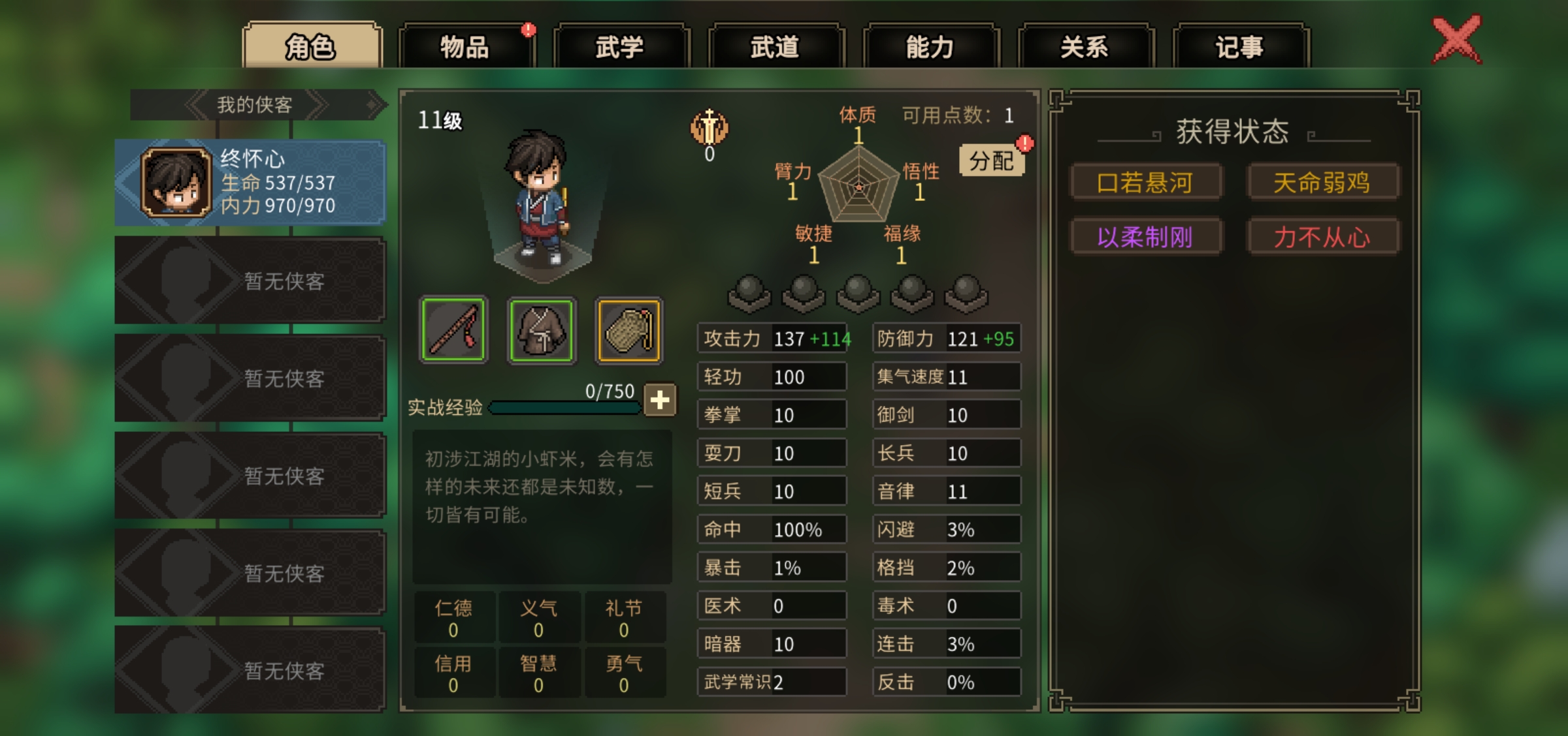 大侠立志传2560单弱鸡禁共享禁mod开局分享如下: