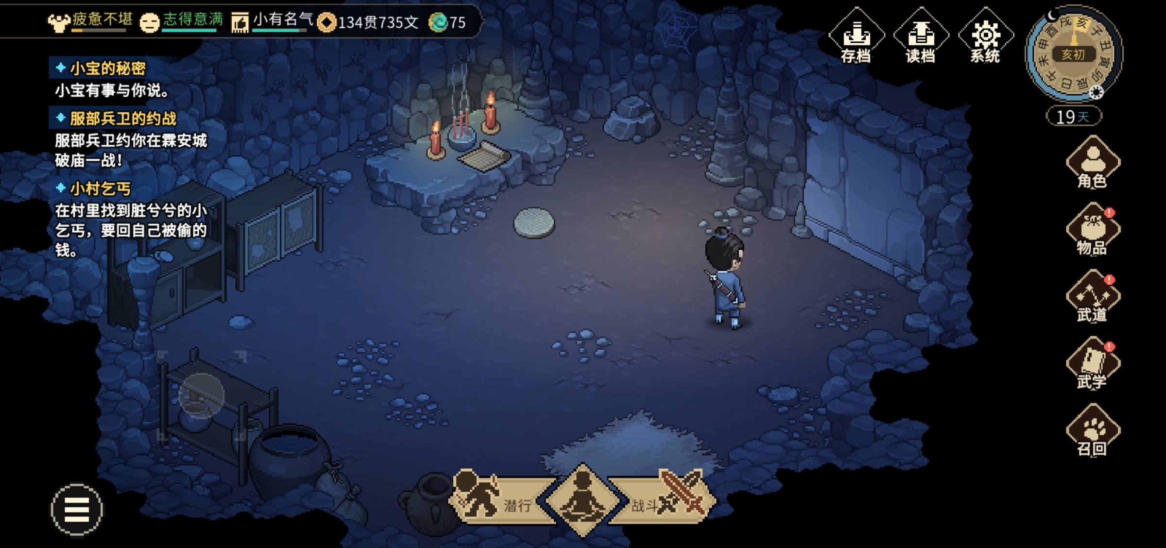 后面就没什么重要的了,打坐打木桩切磋升级练技能。蓝够了可以去把邋遢张拉来,无极洞蓝够挺好打的,前期很强。