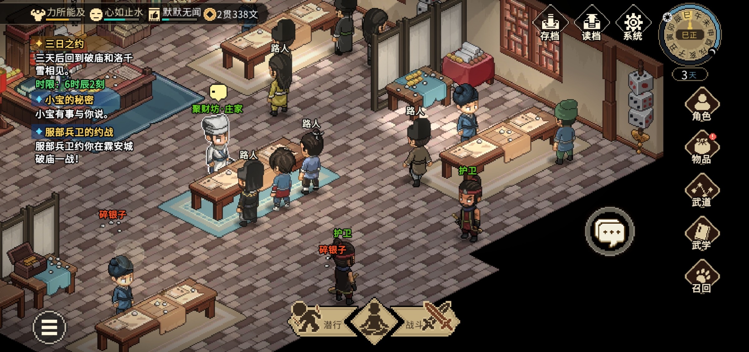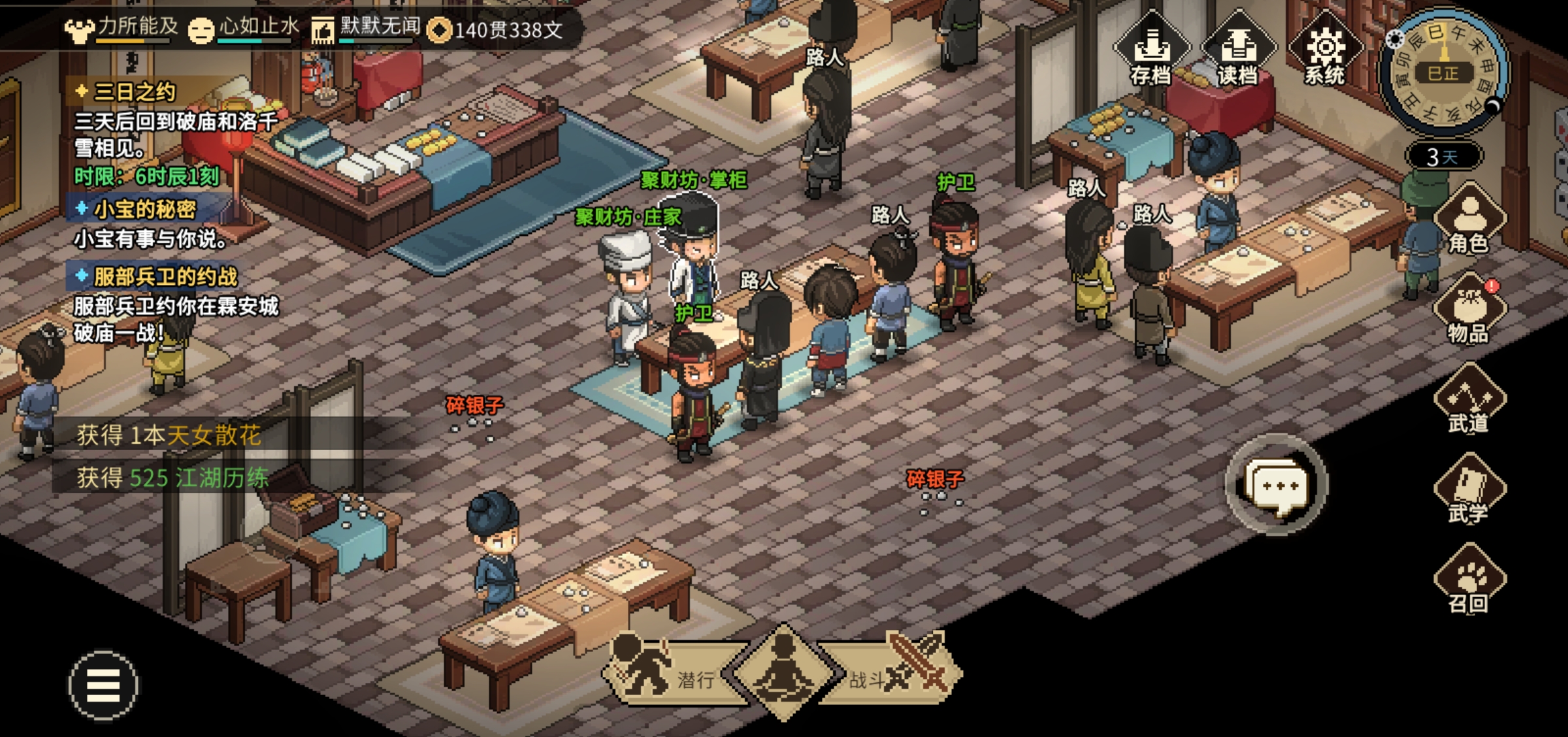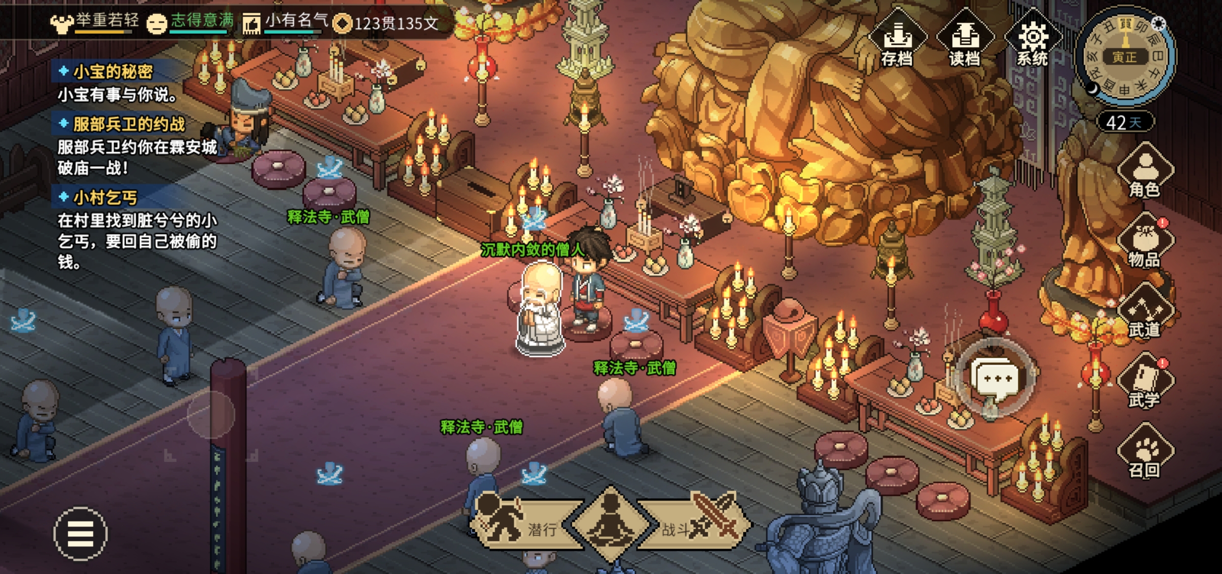 直接到酒楼开邋遢张和长春子剧情,然后到楚襄桥上继续剧情,然后就开始刷仁德和义气,都刷到50到大梁寺庙外面剧情入门。三日之约就别管了,过去也打不过。