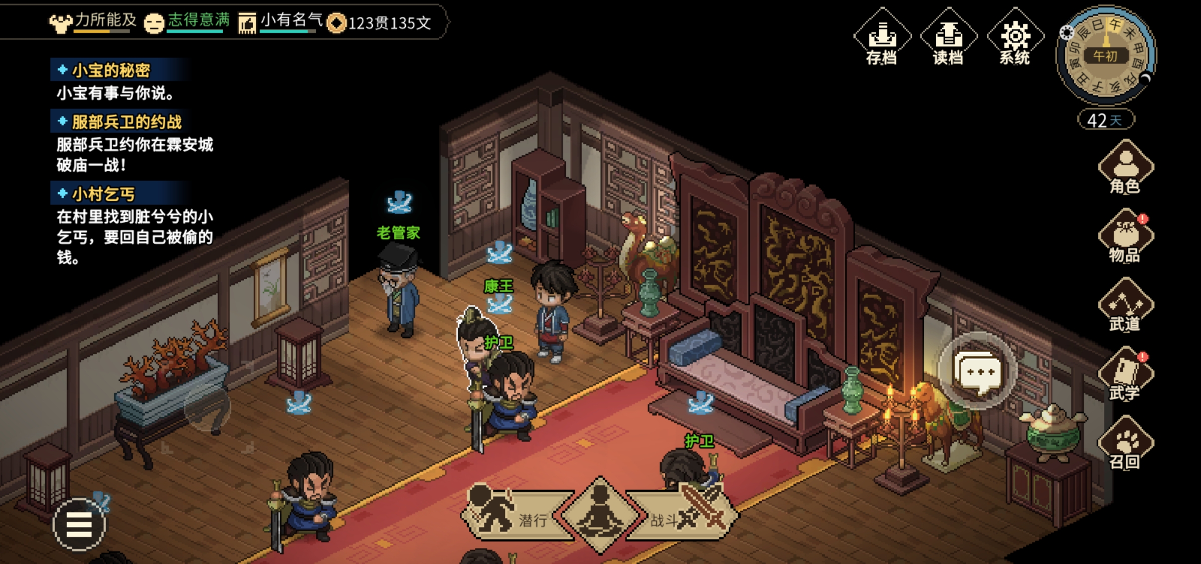 再后面就简单了,一直打坐或者武馆打木桩升级学技能