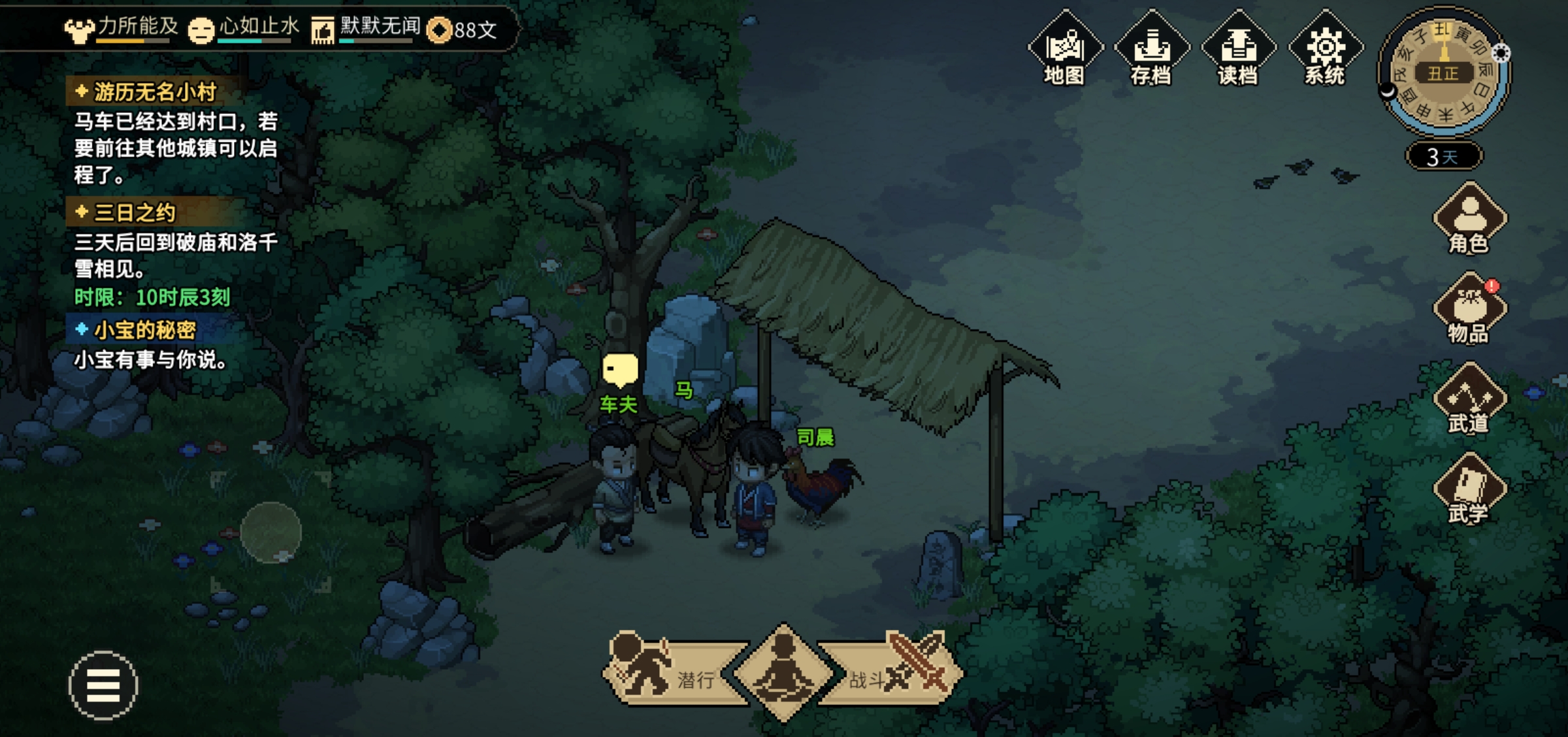 无名小村没什么可说的,包打听打听完,抓虫子领鸡哥,直接打坐睡觉到马车来坐鸡哥走。单弱鸡最好别加老头门,单弱鸡只能无极洞,其他根本玩不了,进老头门太拖了而且前面只有一条命不死,只靠叫老头风险更大了,最好直接进道玄学无极洞。虽然九州决万民掌没了,但为了无极洞没办法。