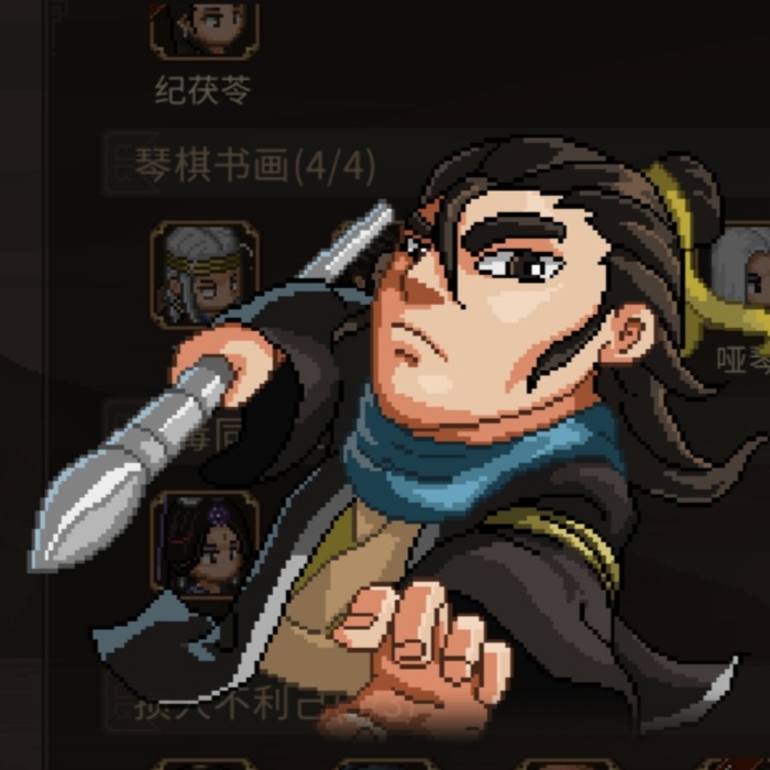 儒圣馆四贤人之一,早年间痴迷练武,却因走火入魔经脉逆转,虽然保住一命却下肢瘫痪,全身气血不足。瘫痪后钻研棋局,在诡谲百变的棋局中反而领悟了更为高深的功夫。