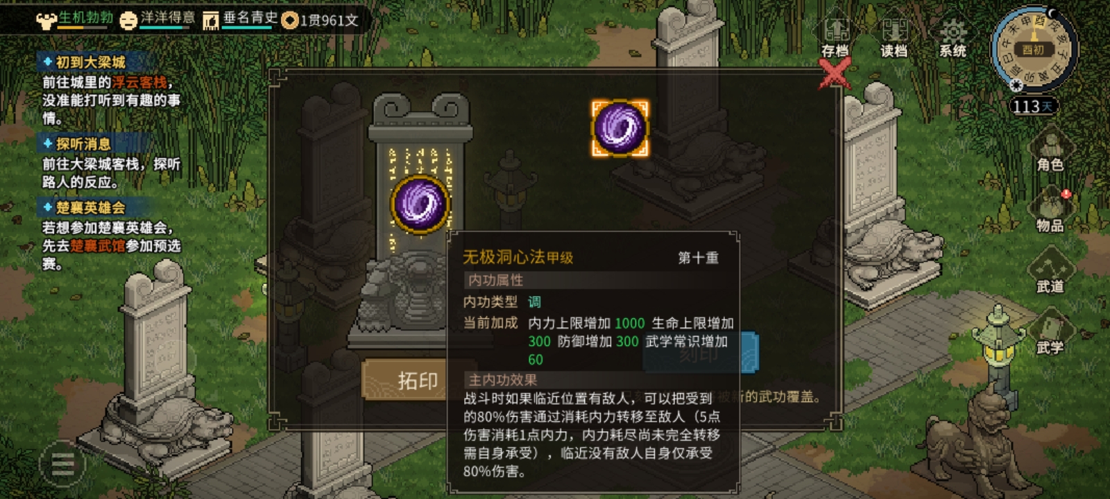 大侠立志传三步教你快速拿到无极洞心法(二周目)如下: