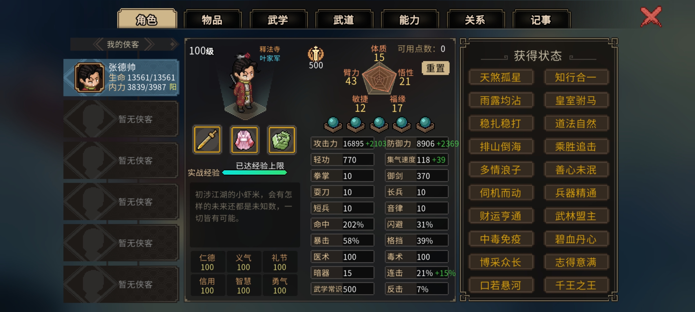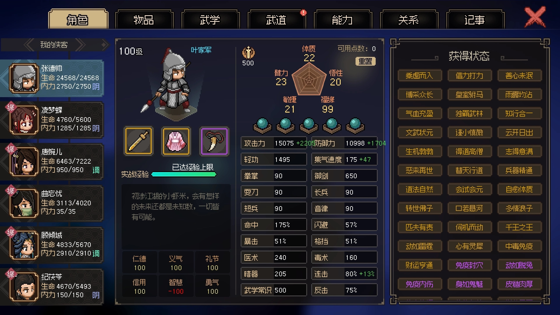 大侠立志传五维事件汇总和五维之和极限如下: