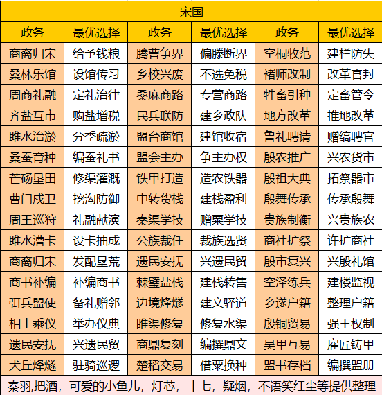 Hello各位小伙伴们大家好呀!我是秦羽。今天给小伙伴们带来的攻略是中淮五国之一的宋国政务攻略。