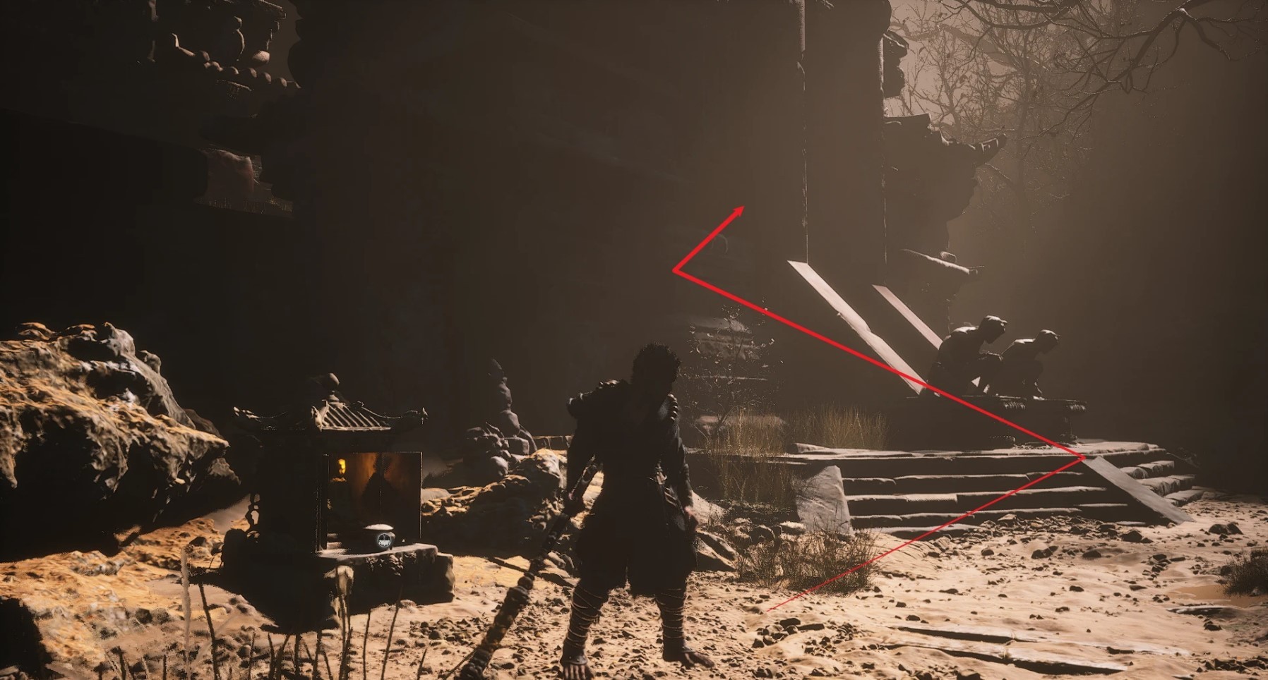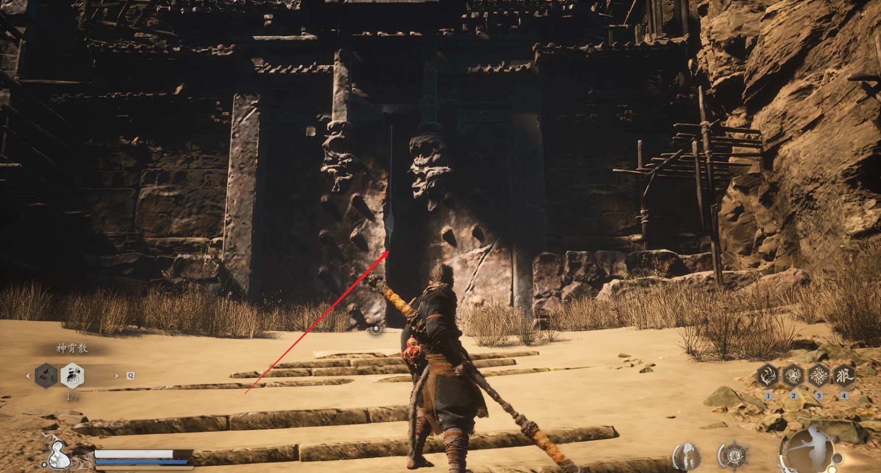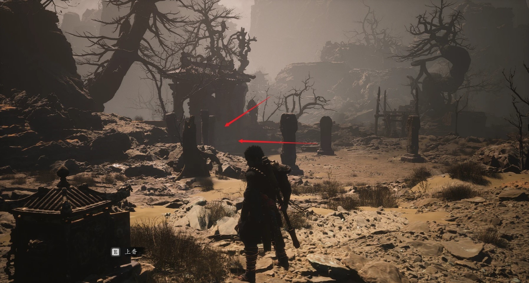 我们要先去拿「旧拨浪鼓」,先来到「黄风岭—卧虎寺—寺门」的土地庙
