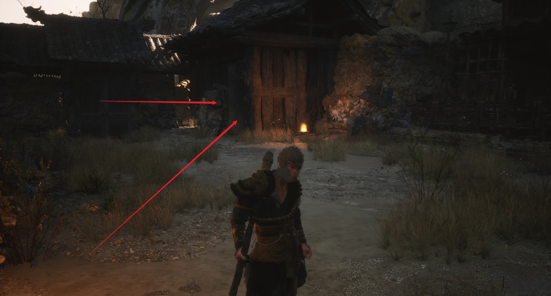 然后我们来到「沙门村—村口」的土地庙,穿过大门往左侧走