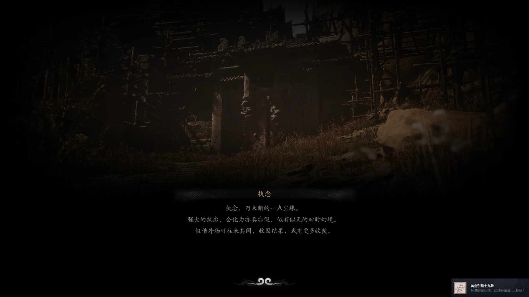然后往下走,右转进入右侧旧屋,触发第二段对话