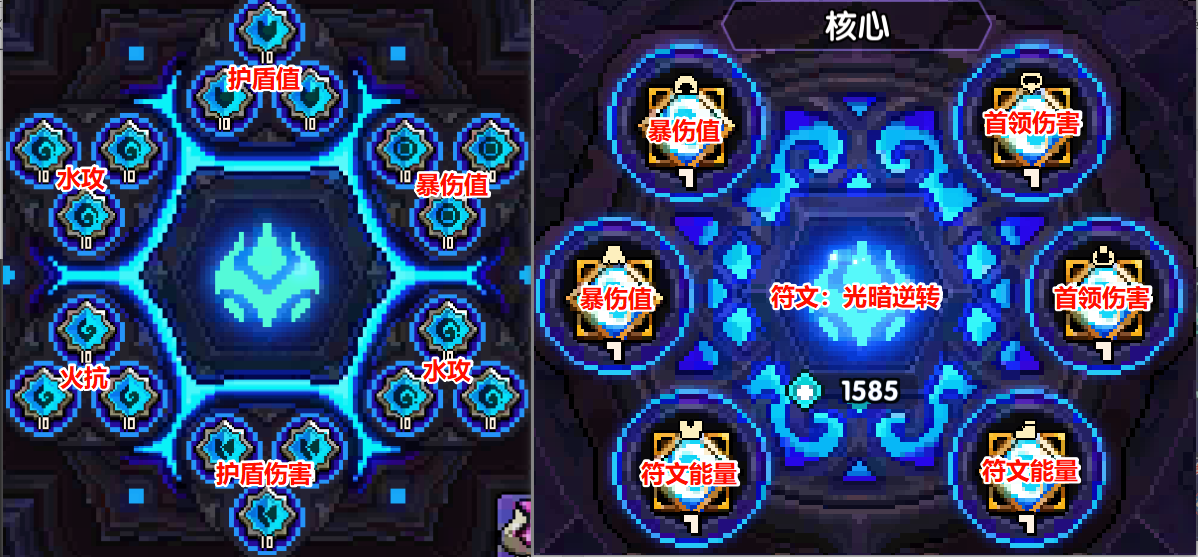褪羽游的毕业搭配为:9火系压制+9伤害增幅+9克制增幅