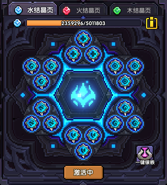 水结晶页(一般叫做水符文页),每一系的符文碎片总量是有本系的元素+25%的其他两系之和构成,也就是说如果你开了个1000水符文的礼包,那么你的水符文碎片总量会加1000,火符文碎片总量会加250,木符文碎片总量会加250
