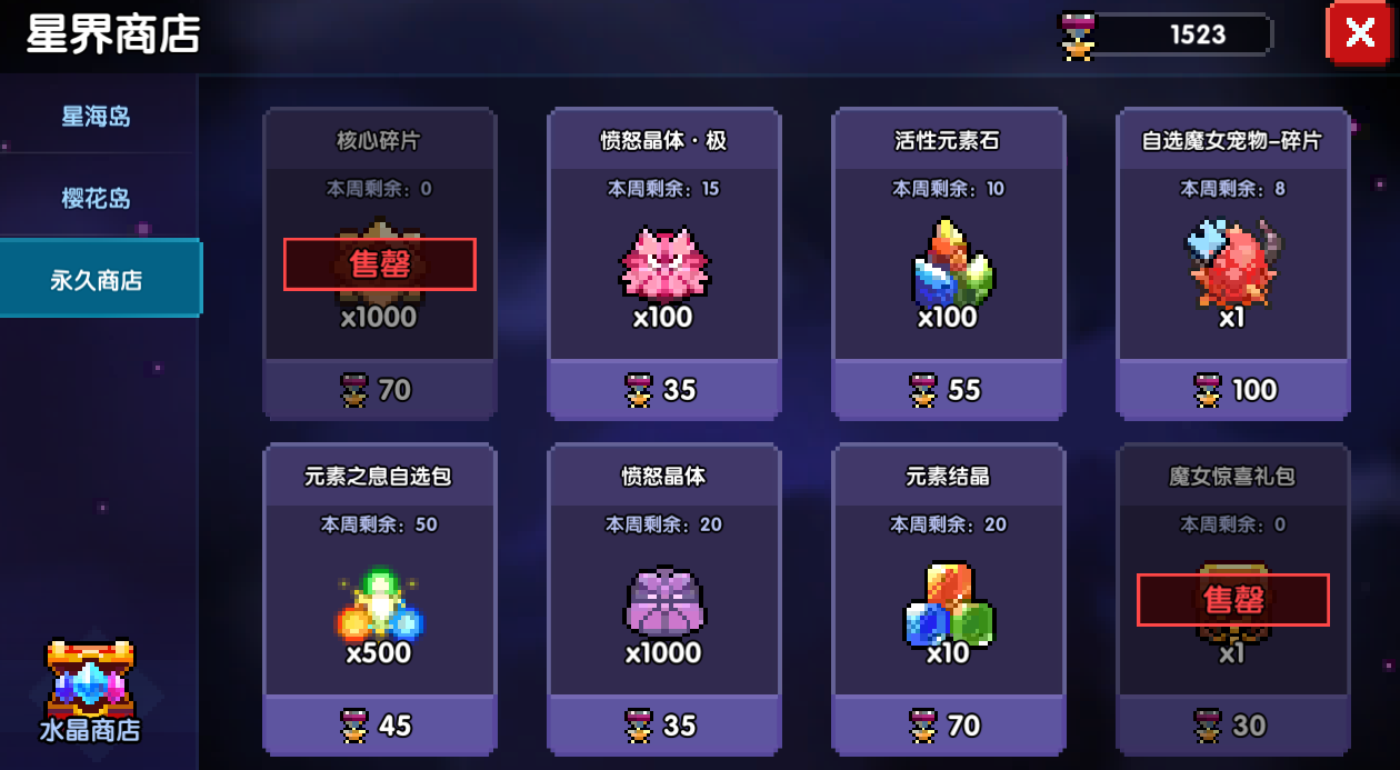 元素最主要的获取是兑换和掉落