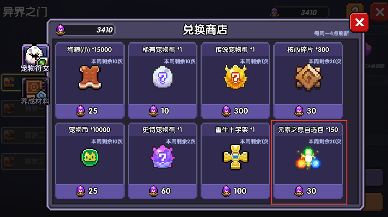 异界之门每周可以兑换150*20=3000