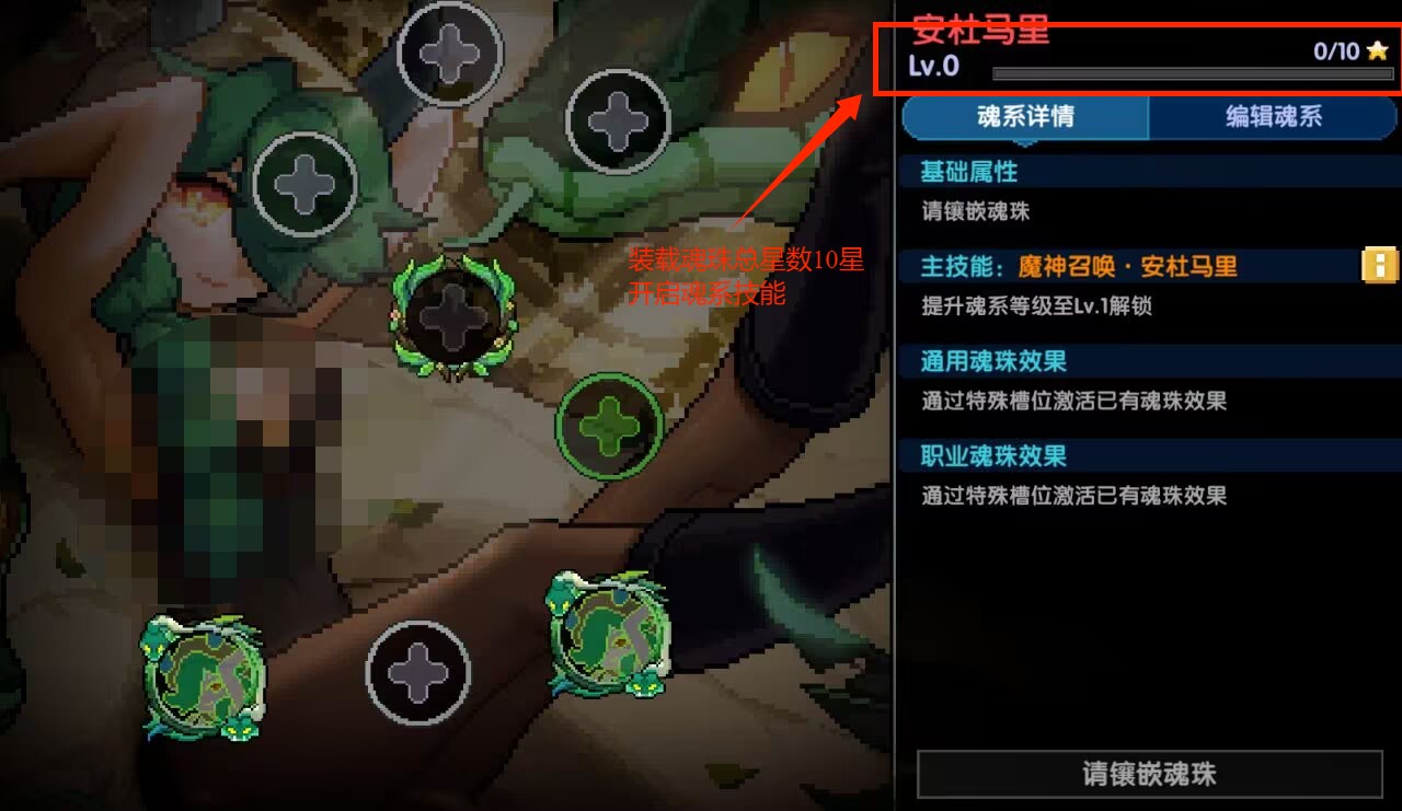 3.魔神之魂(斯托拉斯 阿米 安杜马里 克罗塞尔):8槽位 需要9颗魂珠星级升为1级 最高等级为5 需要52颗魂珠星级 作战主流魂系(除斯托拉斯用于辅助)上限56星级