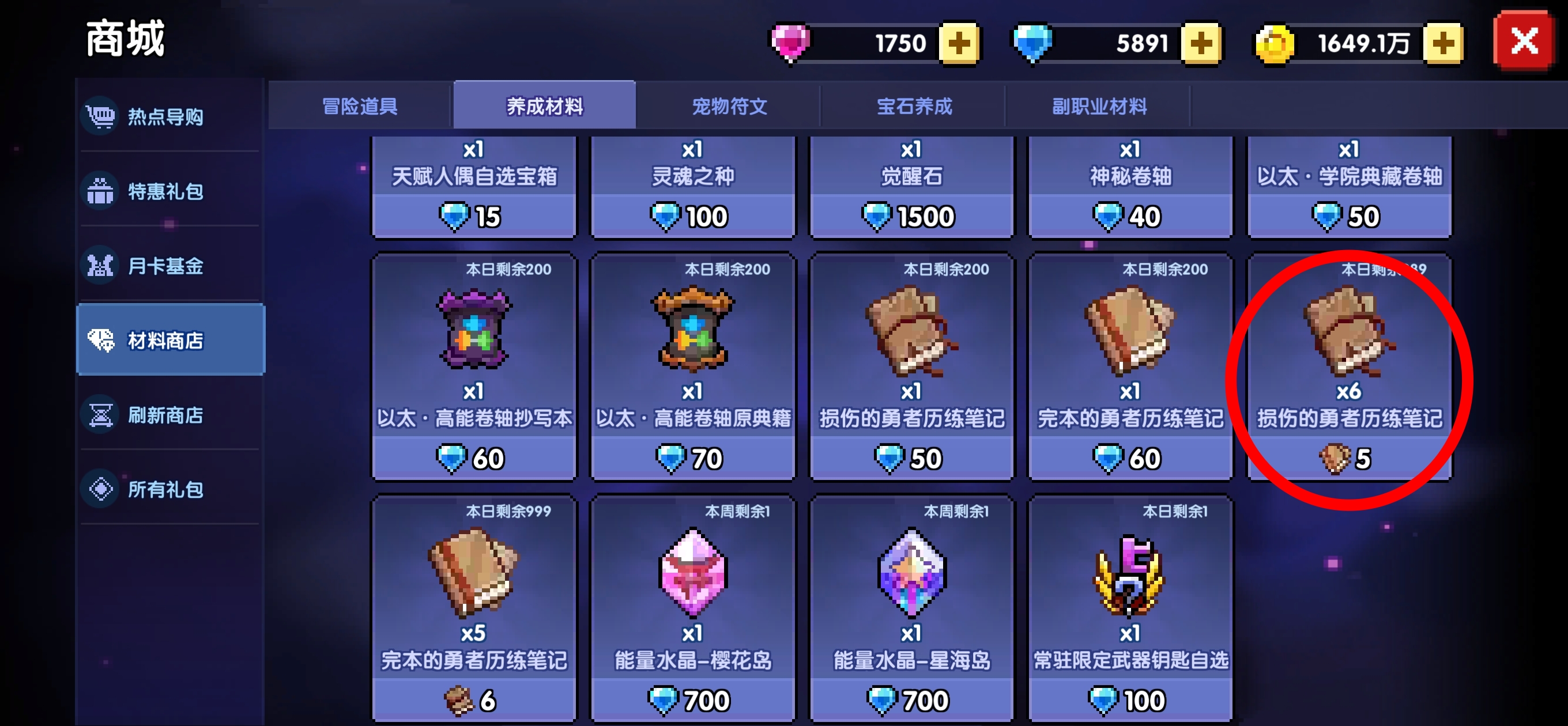 然后就是有比较多萌新有的这个小问题,找不到损伤的笔记哪里搞,给的都是完本的。看上图,商店是可以互换的。