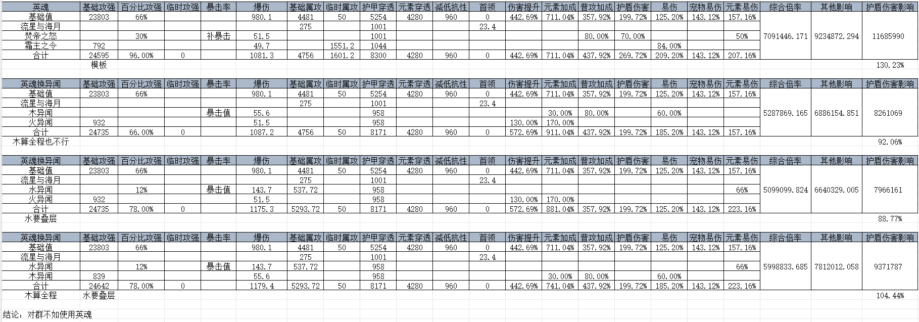 可以很明显的看出来,即使木异闻算全体触发,水异闻算全程叠满,在单纯对群上也比不上英魂系列,只能作为过渡使用